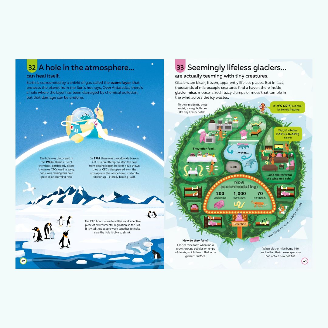 100 Things to Know About Planet Earth to fascynująca książka wydawnictwa Usborne dla dzieci i młodzieży, która w przystępny i angażujący sposób przybliża tajemnice naszej planety. Zawiera aż 100 krótkich, ciekawych faktów o Ziemi – od jej wnętrza, przez oceany i klimat, aż po zjawiska naturalne oraz życie roślin i zwierząt.