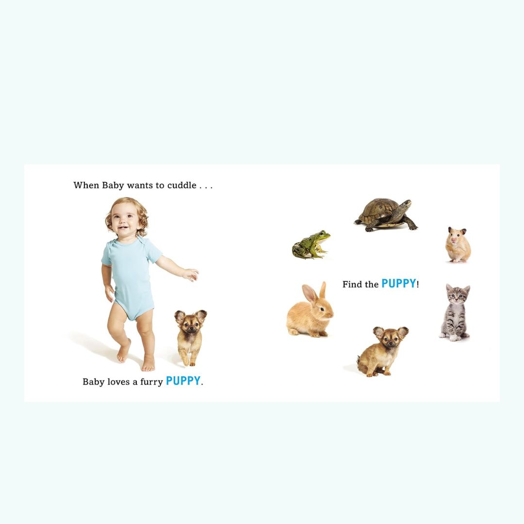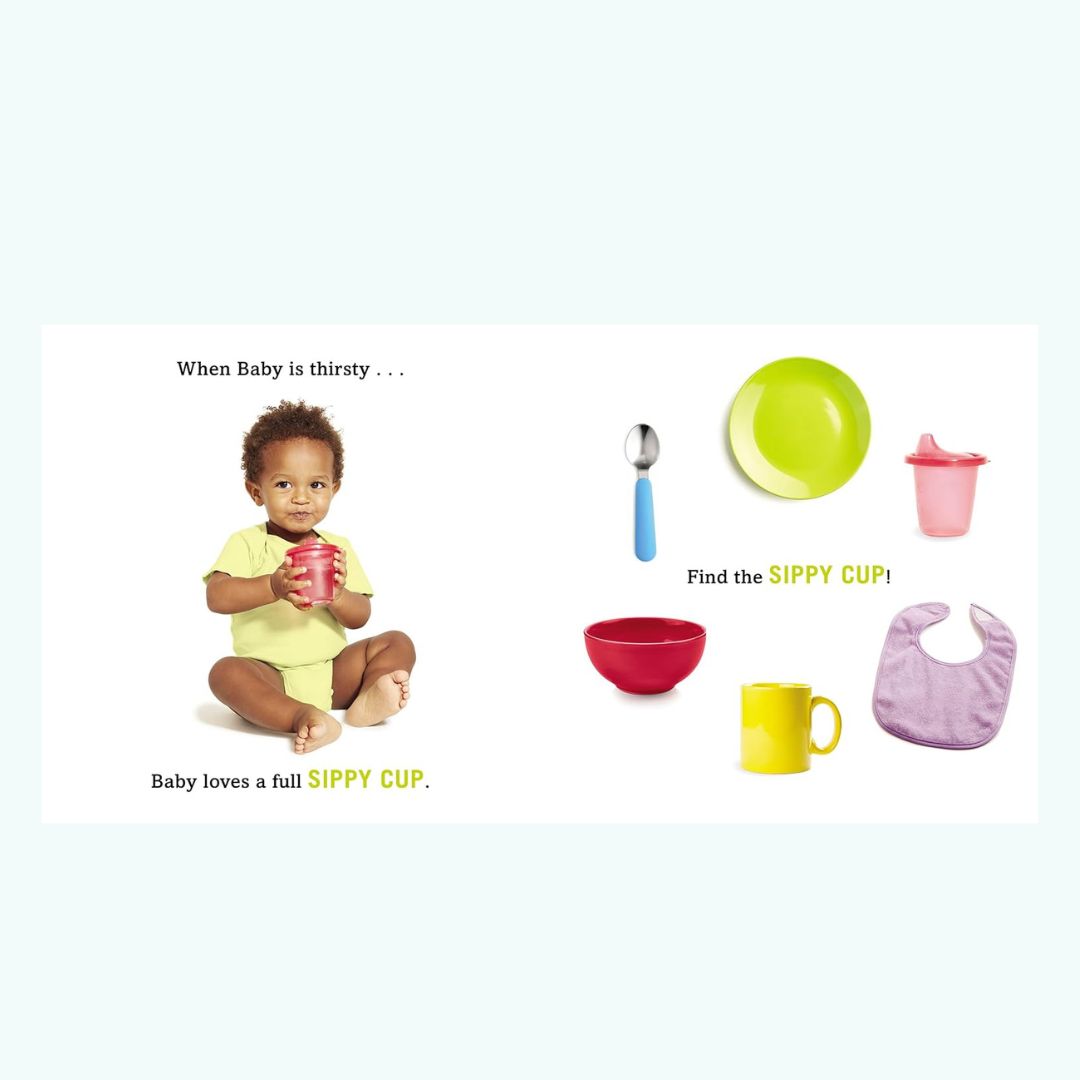 This bold, playful board book introduces a variety of familiar objects for babies to identify, including a banana, a sippy cup, a ball, and a puppy! Each is introduced with a variety of other objects in the same category, and readers are asked to pick out the featured object from the rest. The very last spread reveals what babies love most . . . being loved!