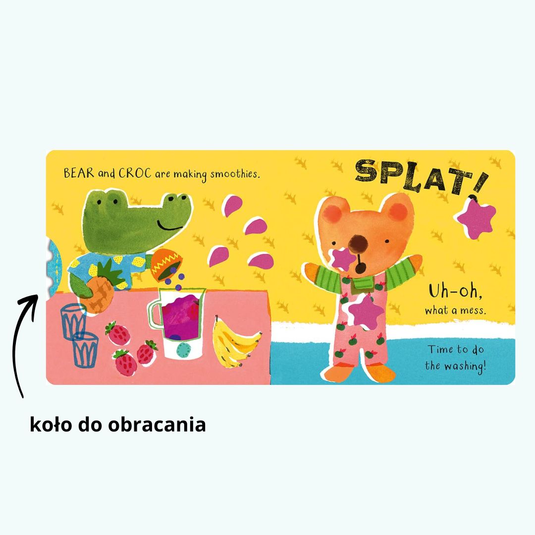 „Bear’s Wash Day” to urocza książeczka, która zabiera małych czytelników w podróż po domu, pokazując wszystkie etapy prania, krok po kroku. Miś i jego przyjaciel Croc uczą dzieci, jak wygląda dzień pełen domowych obowiązków, w sposób angażujący i pełen radości.