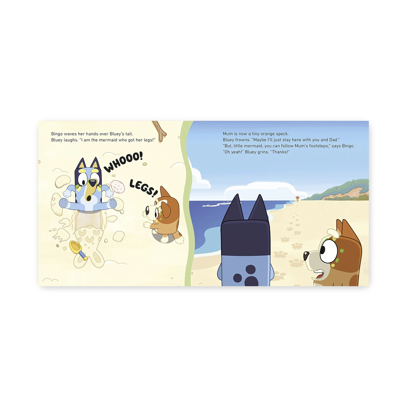 Kolorowe i pełne detali ilustracje przenoszą małych czytelników w świat Bluey i jej rodziny, oddając atmosferę słonecznego dnia na plaży.