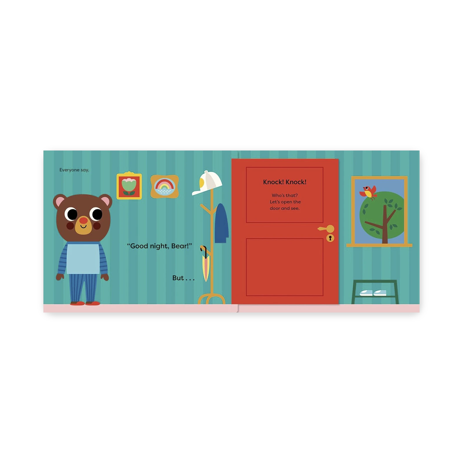Miś szykuje się do snu – zjadł przekąskę, umył zęby i założył swoje miękkie piżamy. Nagle: Puk, puk! Ktoś puka do drzwi. To Myszka – też chce przekąskę. Zaraz potem pojawia się Krokodyl z połamana szczoteczką do zębów, a Lew ma za małą piżamę. A Sowa? Ona jeszcze nie śpi – gra głośno na trąbce!