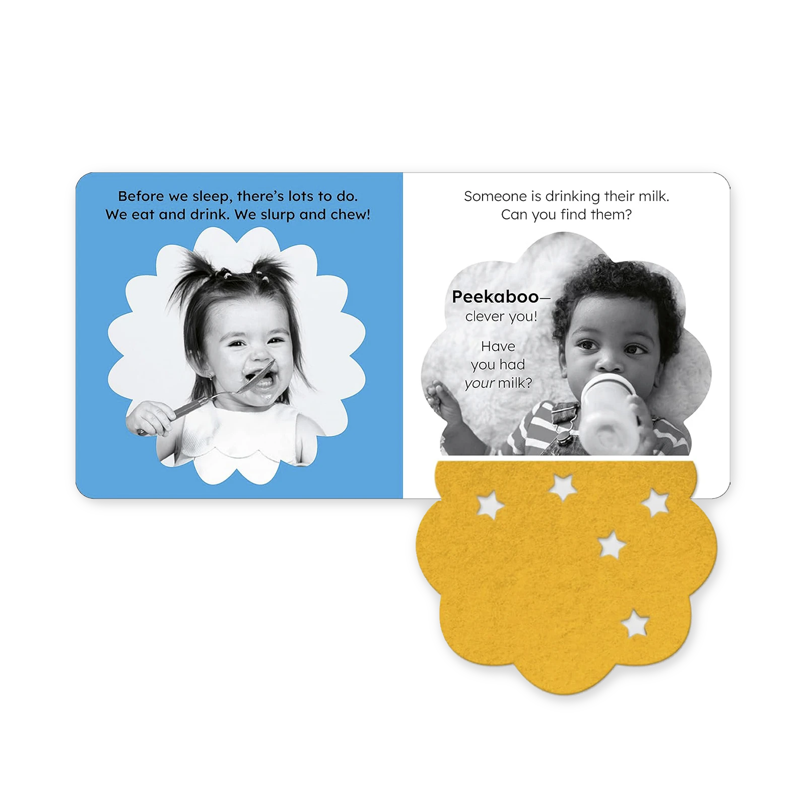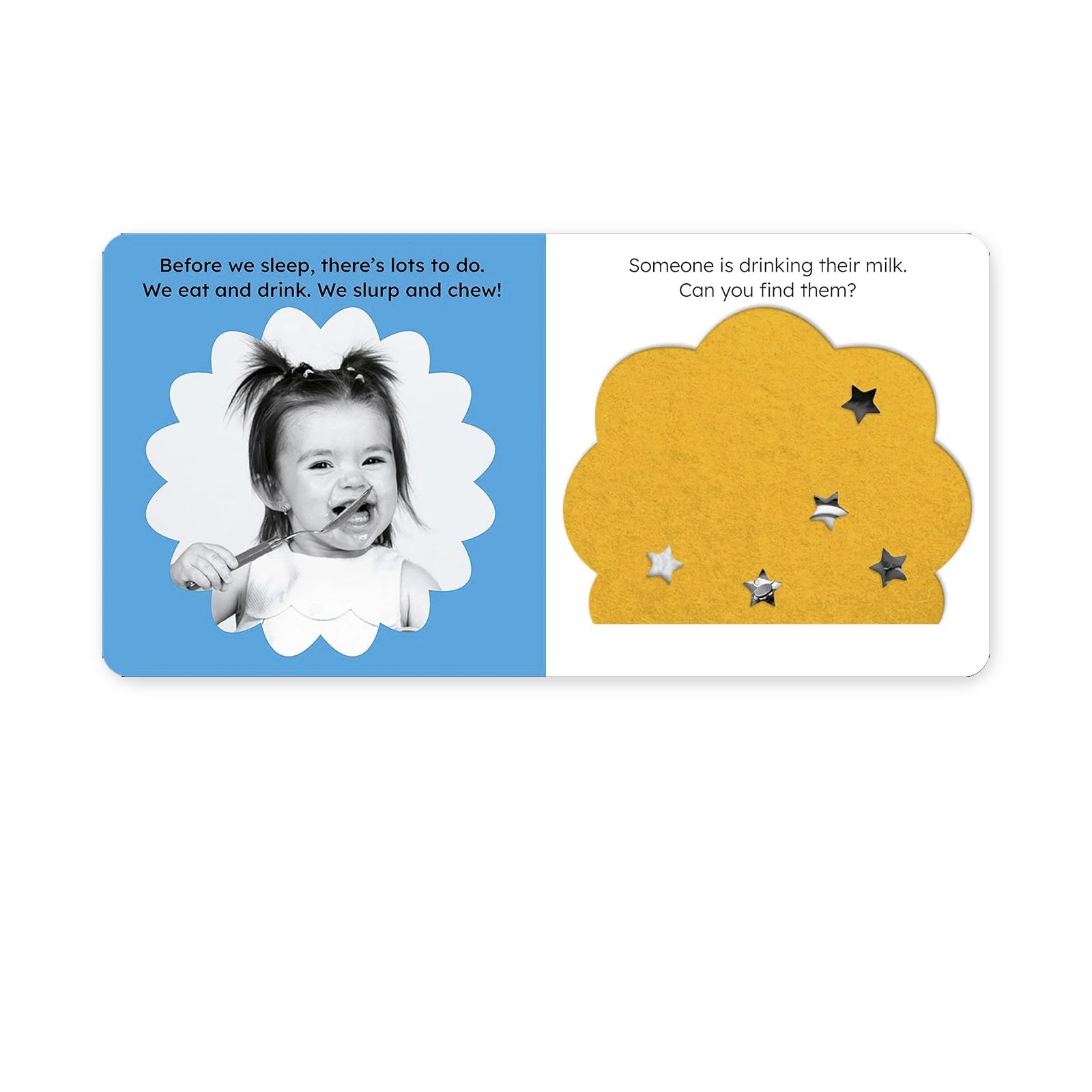 Jednym z wyróżniających się elementów tej książki są filcowe otwierane okienka, które maluchy mogą odkrywać na każdej stronie. Te interaktywne dodatki zachęcają do zabawy i angażują małych czytelników, czyniąc wieczorne czytanie jeszcze bardziej wyjątkowym. Dzieci mogą podglądać, co robią zwierzątka przed snem, odkrywając ich własne wieczorne rytuały, takie jak mycie zębów, kąpiel czy przytulanie się do ulubionej poduszki.