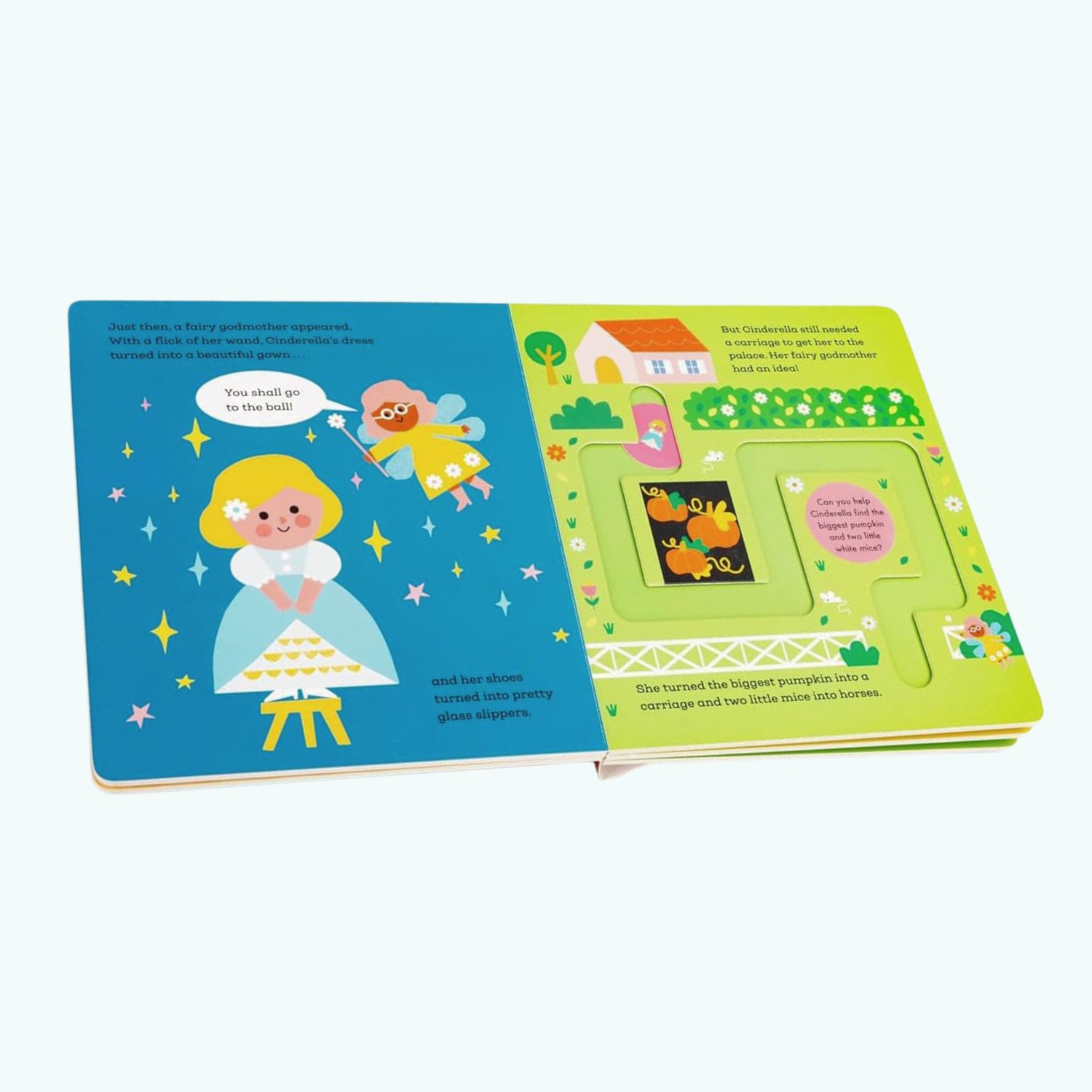„Cinderella” z serii Fairy Tales od wydawnictwa Nosy Crow to urocza, interaktywna książka stworzona z myślą o dzieciach w wieku 2-6 lat. Opowiada prostą i zrozumiałą wersję historii Kopciuszka, prowadząc maluchy przez jego niezwykłą, pełną czarów przygodę aż do balu o północy.
