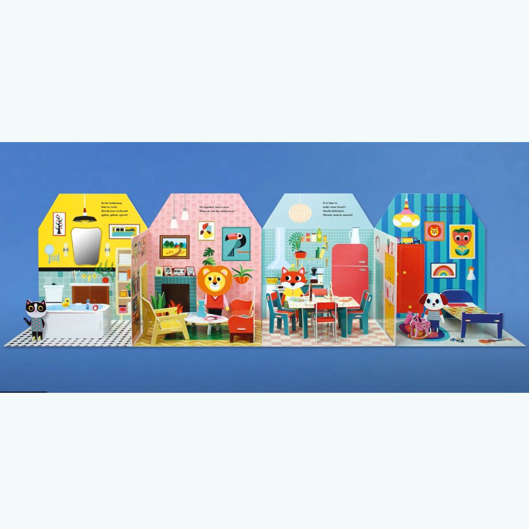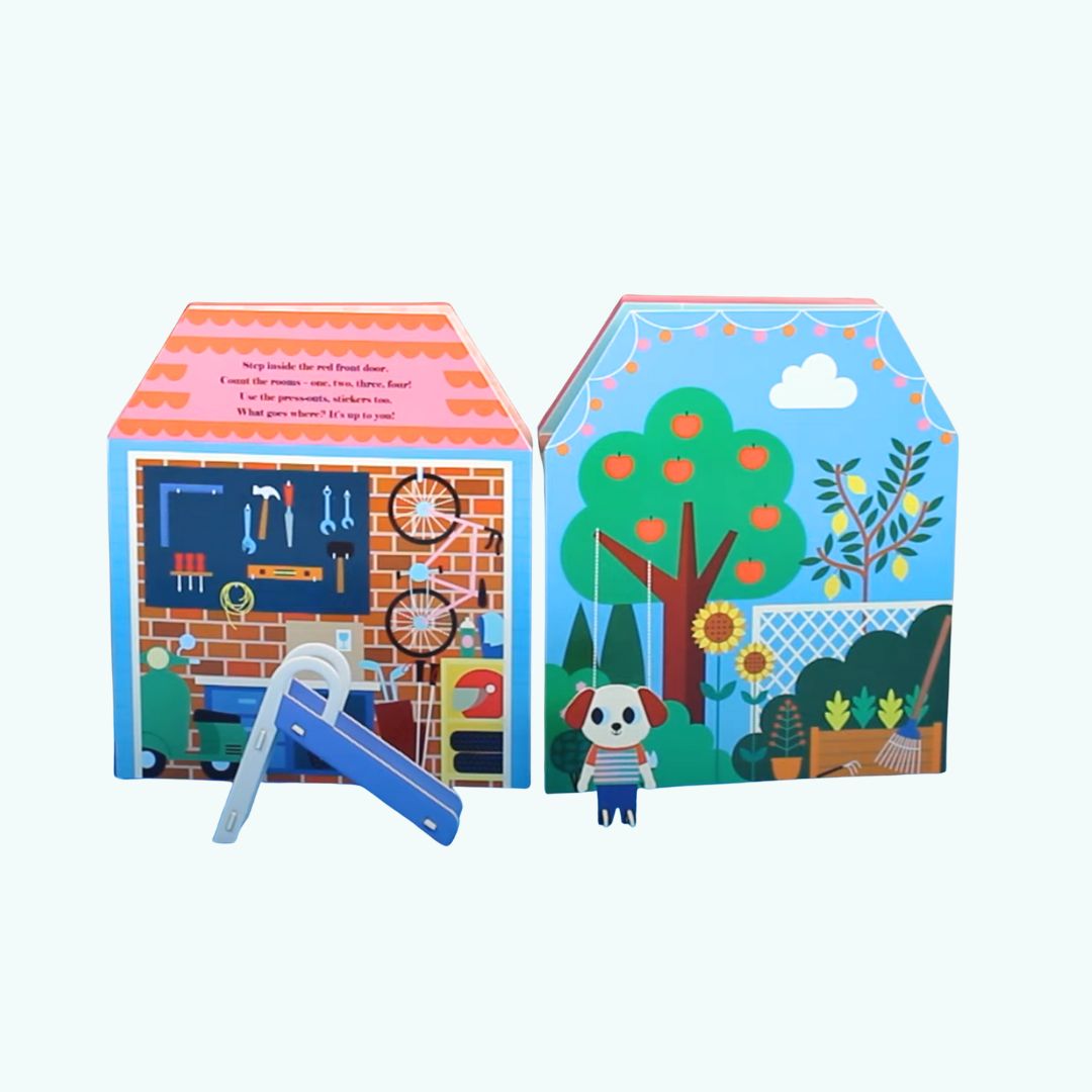Ta niezwykła książka rozkładana w mgnieniu oka zamienia się w stylowy, trójwymiarowy domek dla lalek, który dzieci mogą odkrywać i bawić się nim bez końca!