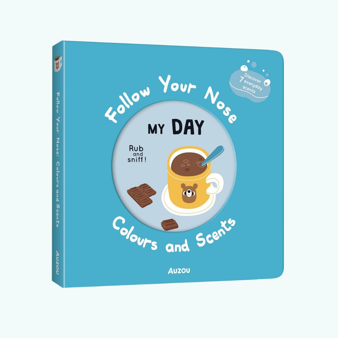 „Follow Your Nose – My Day” to wyjątkowa interaktywna książeczka sensoryczna dla najmłodszych czytelników, która łączy naukę kolorów i codziennych sytuacji z zabawą zmysłami. Każda rozkładówka oferuje żywe ilustracje, jeden kolor oraz odpowiadający mu zapach, który dzieci mogą odkrywać dotykając i wąchając specjalne powierzchnie w książce. Dzięki temu poznawanie barw i codziennych momentów staje się pełne radości, ciekawości i realnych wrażeń – to idealny sposób, aby zachęcić maluchy do wzbogacania słownictwa i opowiadania o swoich przeżyciach w języku angielskim, nawet jeśli dopiero zaczynają przygodę z językiem obcym.