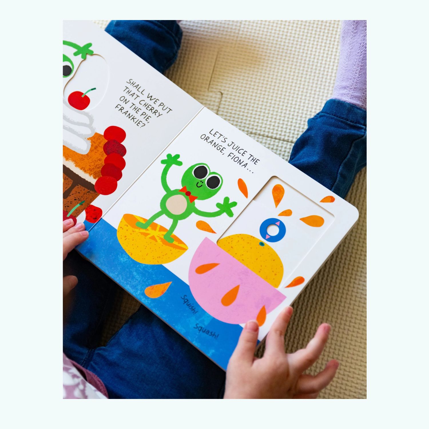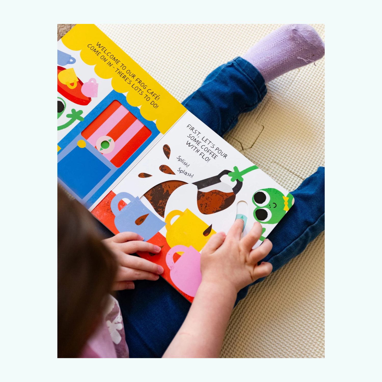 Frog Town to pełna humoru i niespodzianek interaktywna książeczka kartonowa dla najmłodszych, która zaprasza dzieci do wyjątkowego świata sympatycznych żabek.