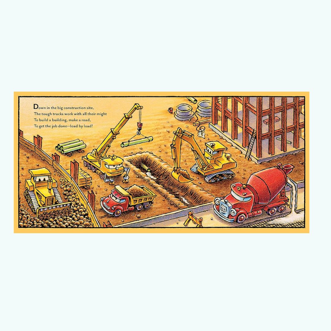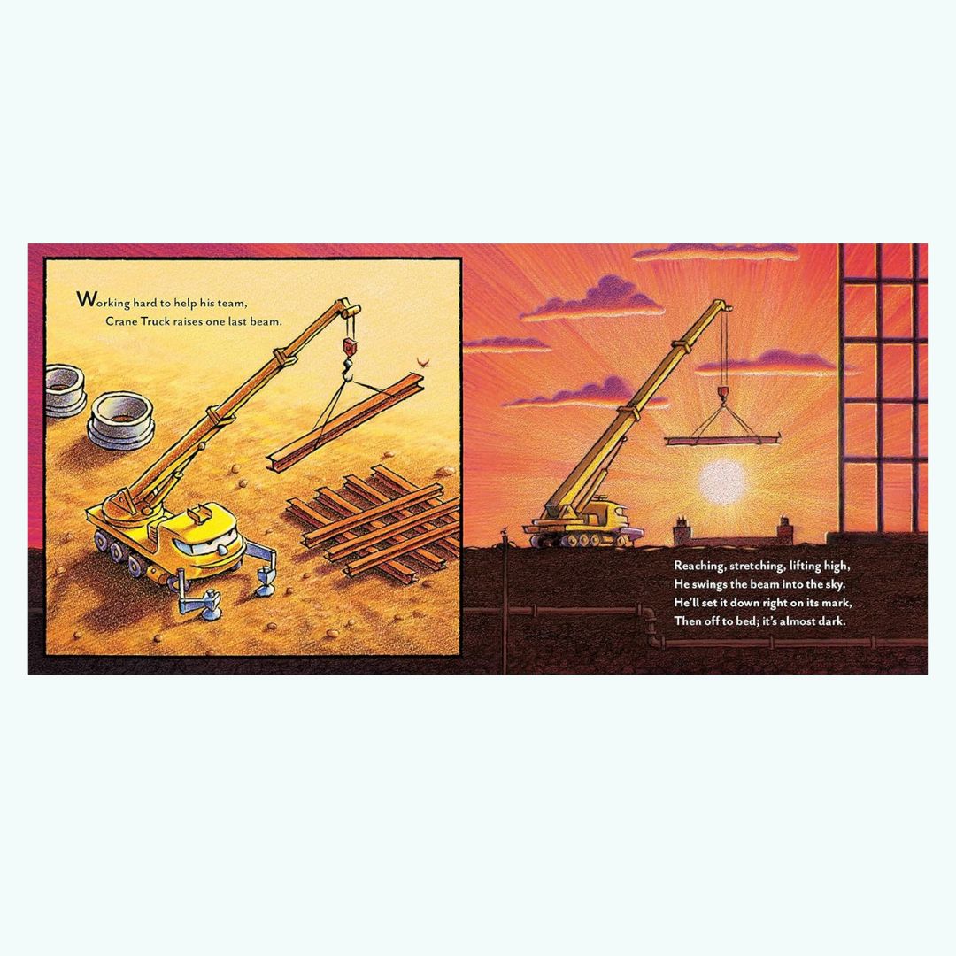 Książka Goodnight, Goodnight Construction Site to bestsellerowy klasyk, który podbija serca dzieci i rodziców na całym świecie. Jeśli Twoje dziecko uwielbia koparki, dźwigi i wywrotki – to z ten tytuł jest dobrym wyborem.