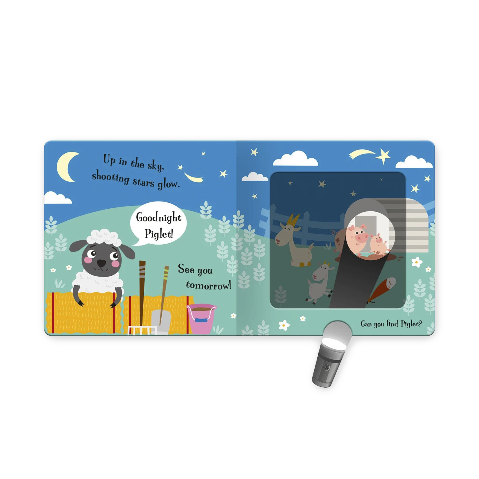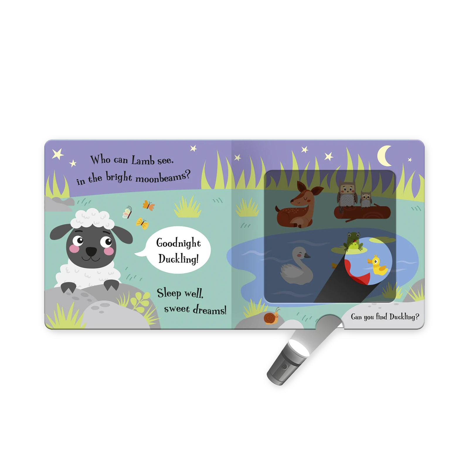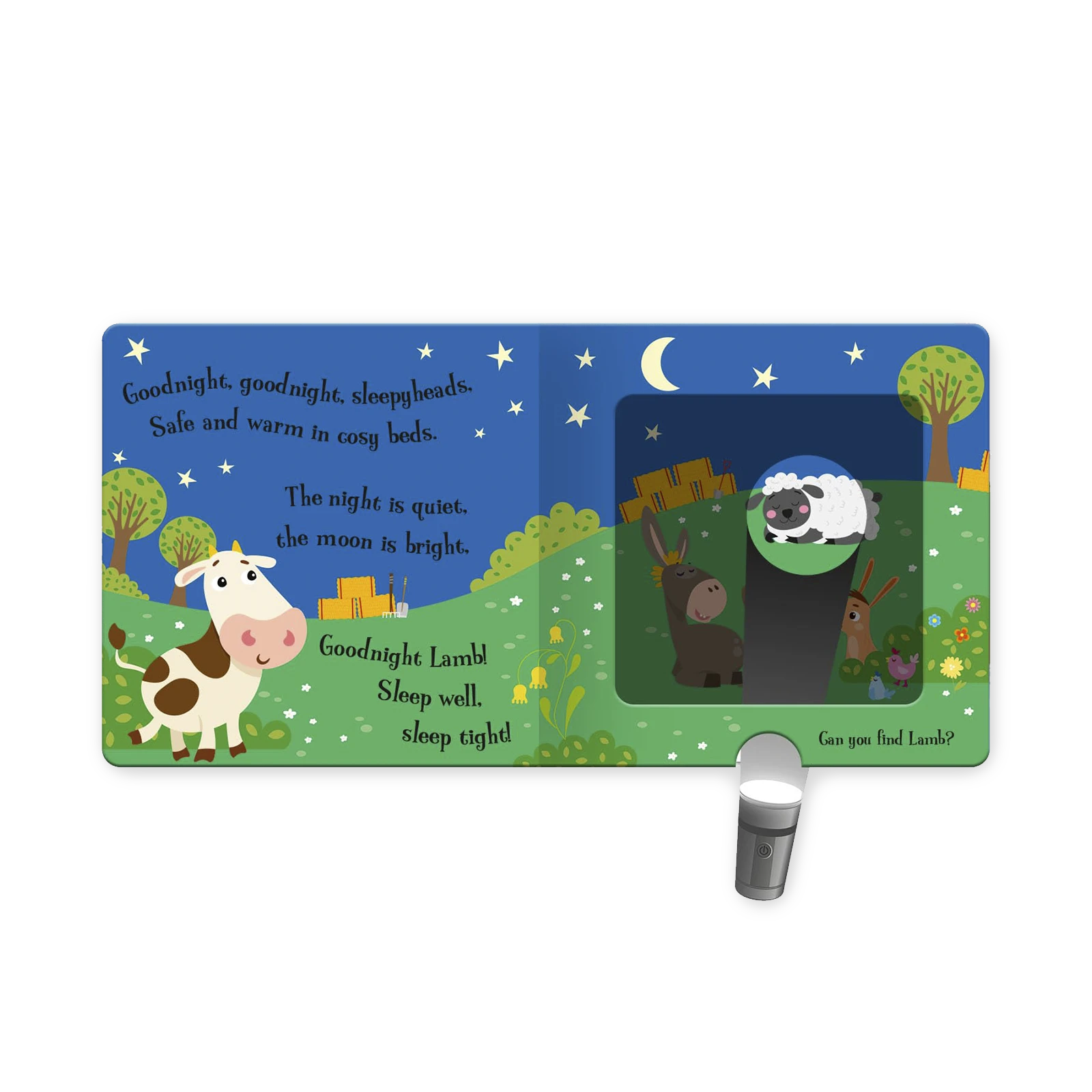 Goodnight Lamb – Magic Torch Book to urocza, interaktywna książka, która zamienia wieczorne czytanie w magiczną przygodę. Dzięki dołączonej „latarce” dzieci mogą odkrywać ukryte obrazki i towarzyszyć barankowi w jego spokojnych przygotowaniach do snu. To połączenie bajki na dobranoc i zabawy w odkrywanie, które zachwyci maluchy i rodziców.
