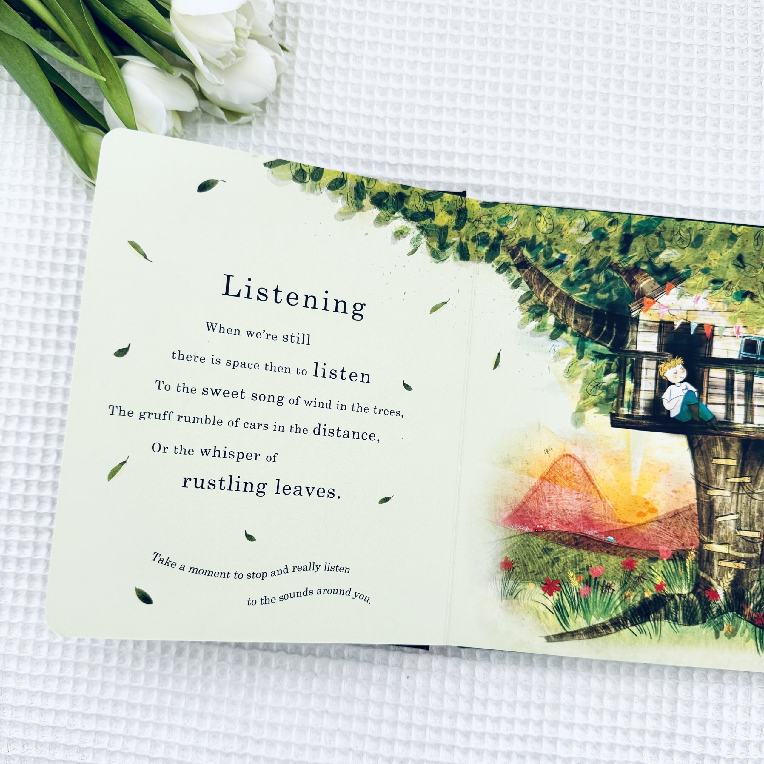 Pełne uroku ilustracje Katie Hickey prowadzą czytelnika w podróż do miejsca szczęścia i spokoju.