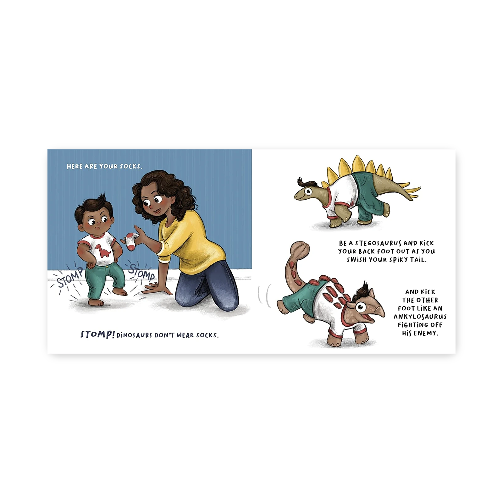 Każdy rodzic zna codzienną walkę z ubieraniem dziecka! Ale czy wiedzieliście, że dinozaury też nie noszą koszulek? 🦕 Dzięki tej zabawnej książce pełnej śmiesznych i kolorowych dinozaurów, maluchy nauczą się, jak z łatwością wskoczyć w spodnie i włożyć ręce do rękawów. Ubieranie stanie się świetną zabawą, a nie obowiązkiem!