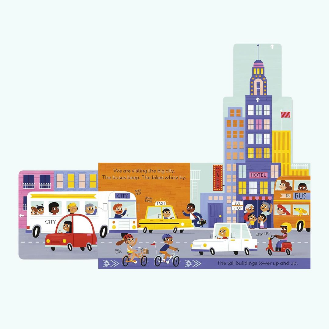 The gentle narrative is perfect for reading aloud and guiding children on their city adventure, and a novelty slide, push or pull on every spread also helps them to engage and explore.
