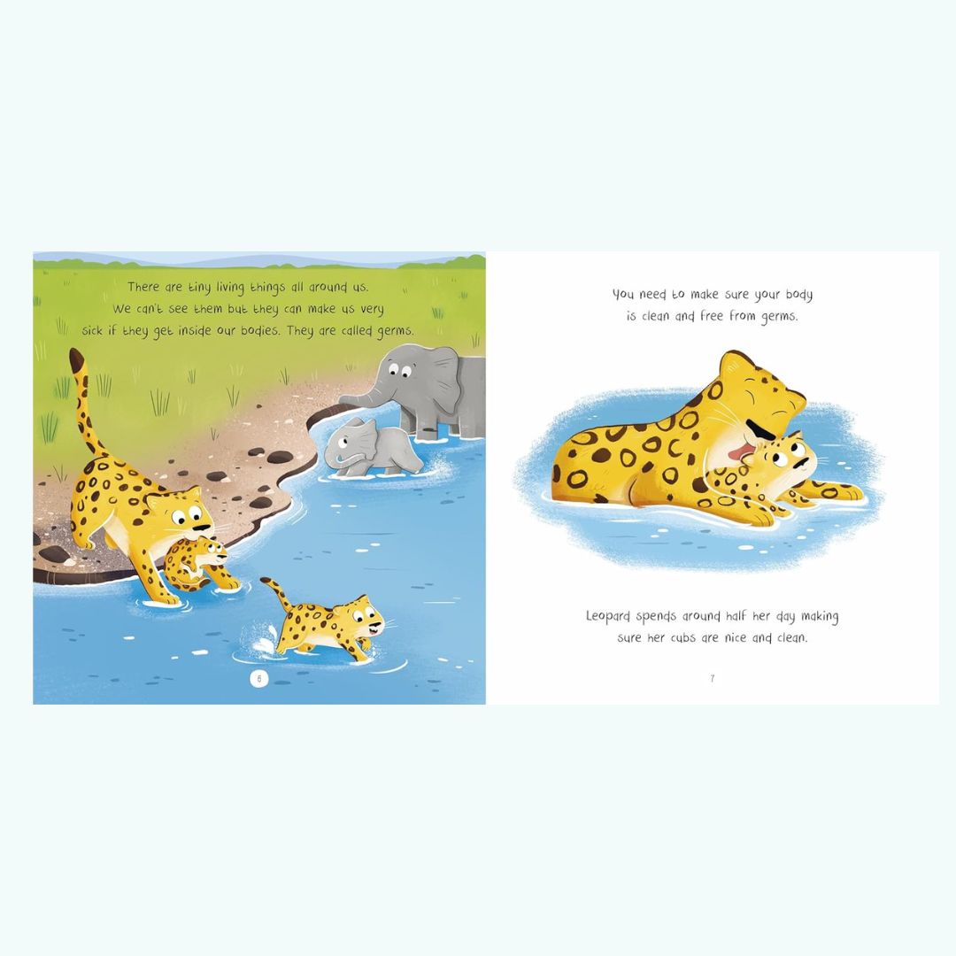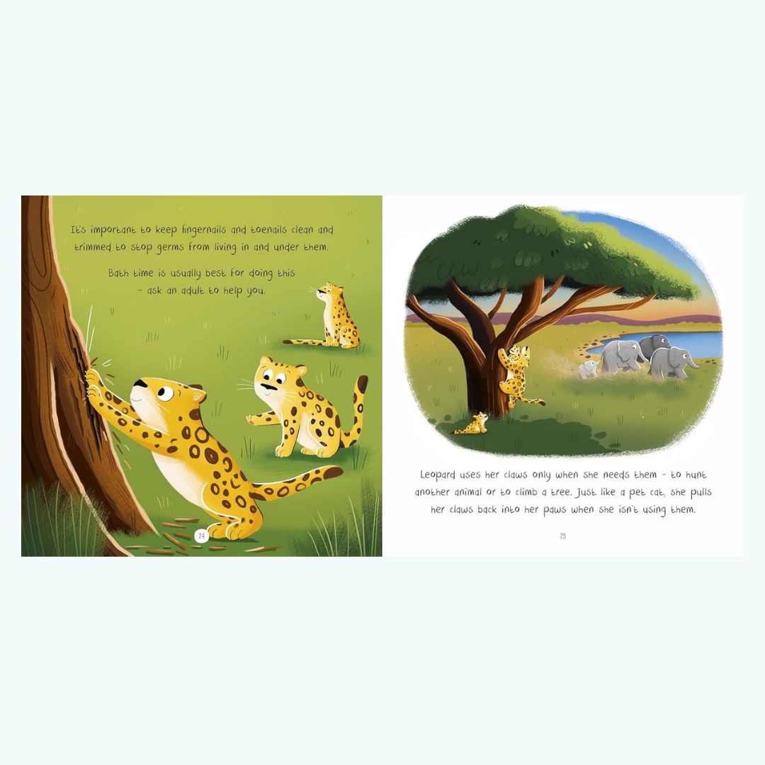 Healthy Habits: Leopard’s Guide to Keeping Clean to przyjazna i edukacyjna książeczka, która w prosty sposób uczy dzieci podstaw higieny osobistej. Głównym bohaterem jest wesoły lampart, który krok po kroku pokazuje, jak ważne jest dbanie o czystość – od mycia rąk po codzienne kąpiele. Książka została stworzona z myślą o dzieciach w wieku 5–7 lat, a jej prosta forma i kolorowe ilustracje sprawiają, że jest idealna dla najmłodszych uczących się języka angielskiego.