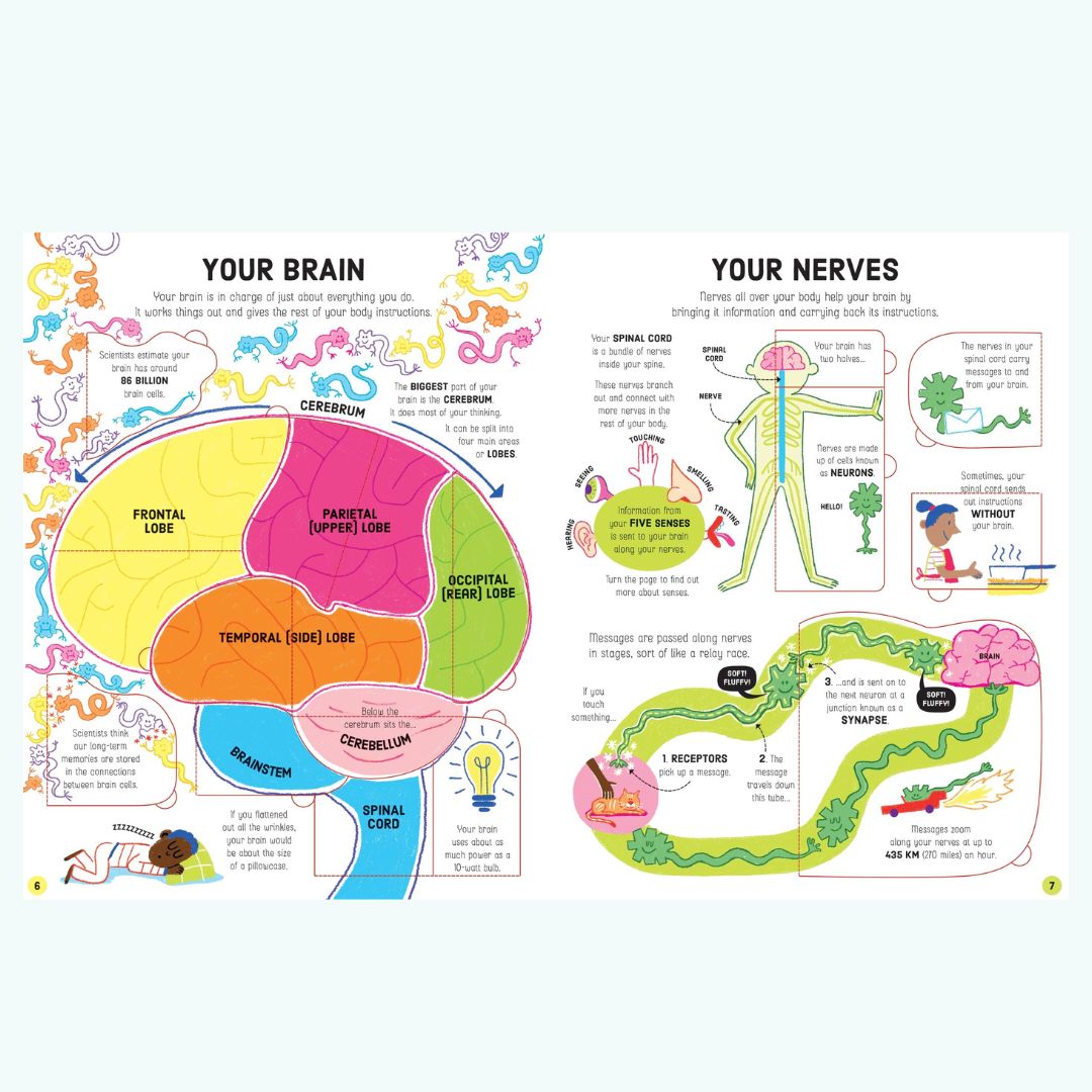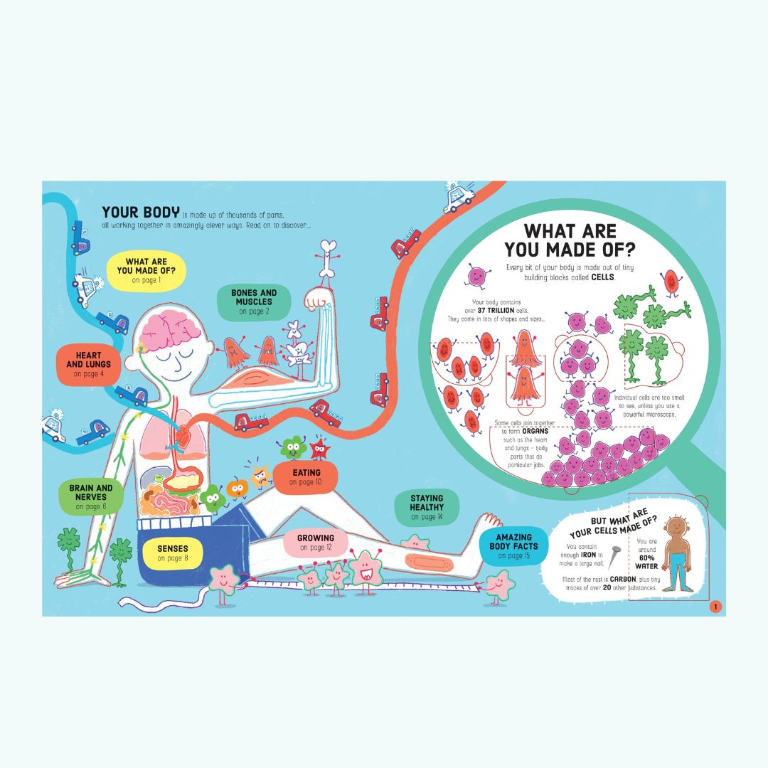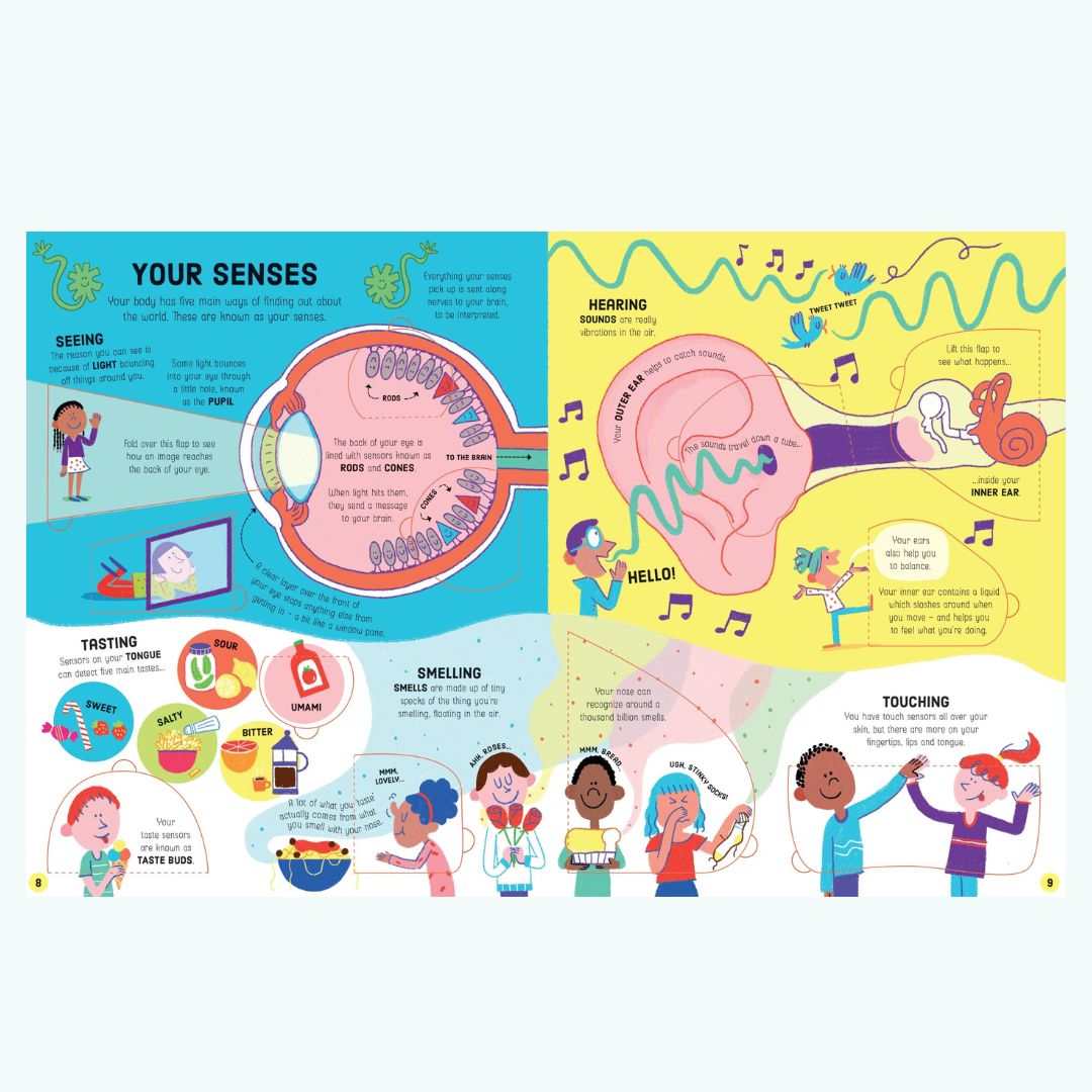 .Lift-the-Flap How Your Body Works to fascynująca podróż przez ludzkie ciało, która pozwala dzieciom samodzielnie odkrywać sekrety biologii człowieka poprzez podnoszenie okienek i odkrywanie ukrytych informacji. Każda strona pełna jest ciekawostek o układzie kostnym, mięśniach, krwi, mózgu, zmysłach oraz o tym, co dzieje się w naszym organizmie, gdy jemy, oddychamy i rośniemy.