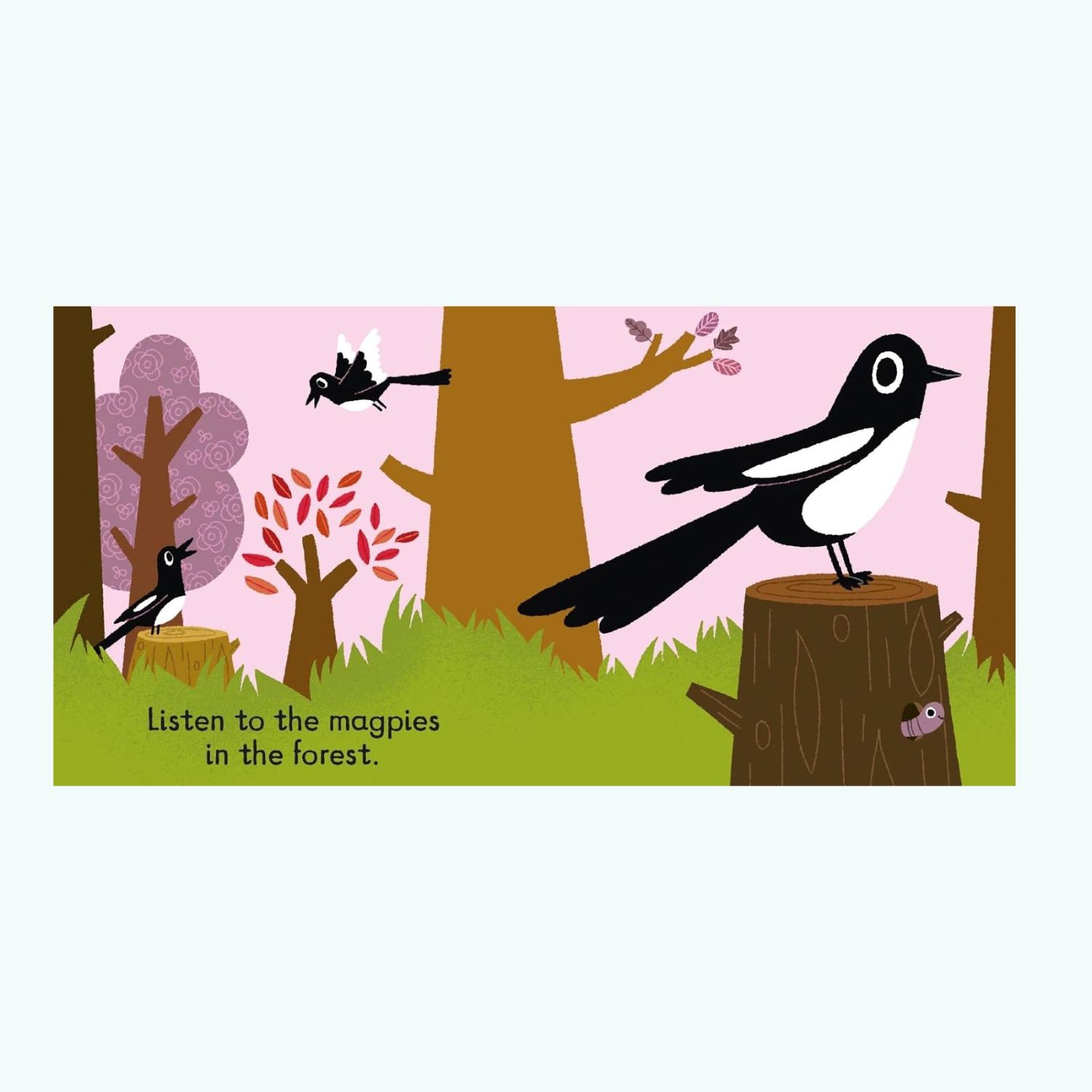 Listen to the Birds (Nosy Crow) to interaktywna książka dźwiękowa dla najmłodszych, która wprowadza dzieci w świat ptaków poprzez ilustracje i realistyczne odgłosy ich śpiewu. Każda strona zawiera przycisk uruchamiający dźwięk, zachęcając do nauki i zabawy. Solidne, kartonowe wydanie idealnie sprawdzi się dla małych odkrywców przyrody.