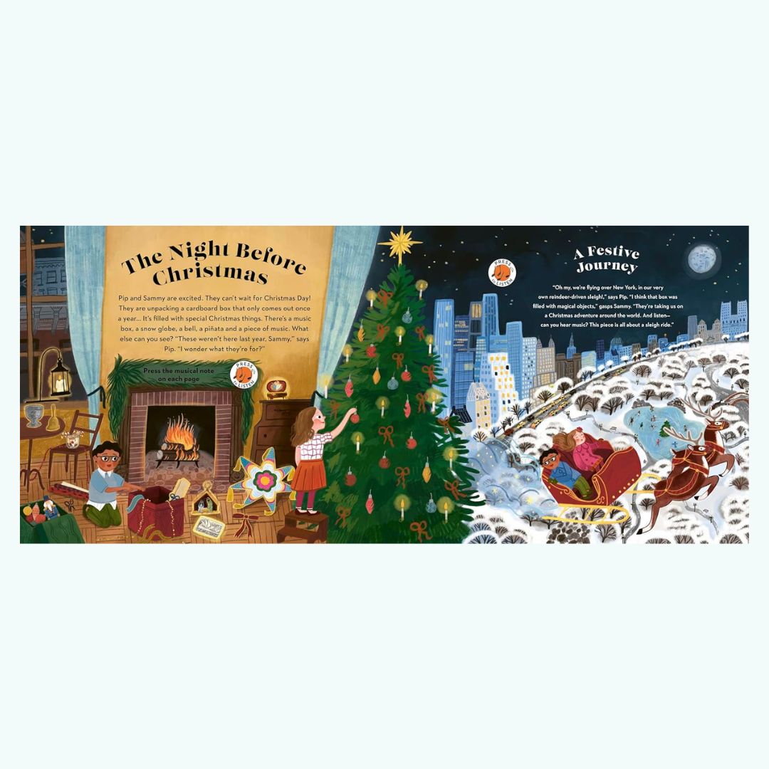Wyrusz w świąteczną podróż razem z dziećmi, które zwiedzają świat, poznając najsłynniejsze bożonarodzeniowe melodie. Każda strona książki odkrywa kolejne znane utwory, które od setek lat tworzą wyjątkowy klimat Świąt.
