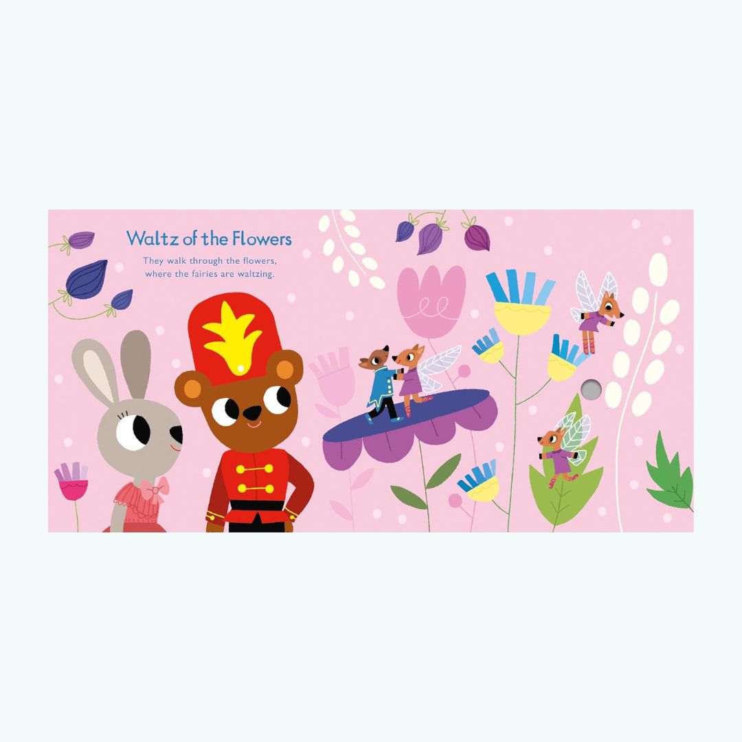 „Listen to the Nutcracker” to zachwycająca, interaktywna książka dźwiękowa stworzona specjalnie dla najmłodszych czytelników — niemowląt i dzieci w wieku przedszkolnym. Na każdej rozkładówce znajduje się łatwy do naciśnięcia przycisk, który po dotknięciu odtwarza fragment jednego z pięknych utworów Piotra Czajkowskiego z baletu Dziadek do orzechów.