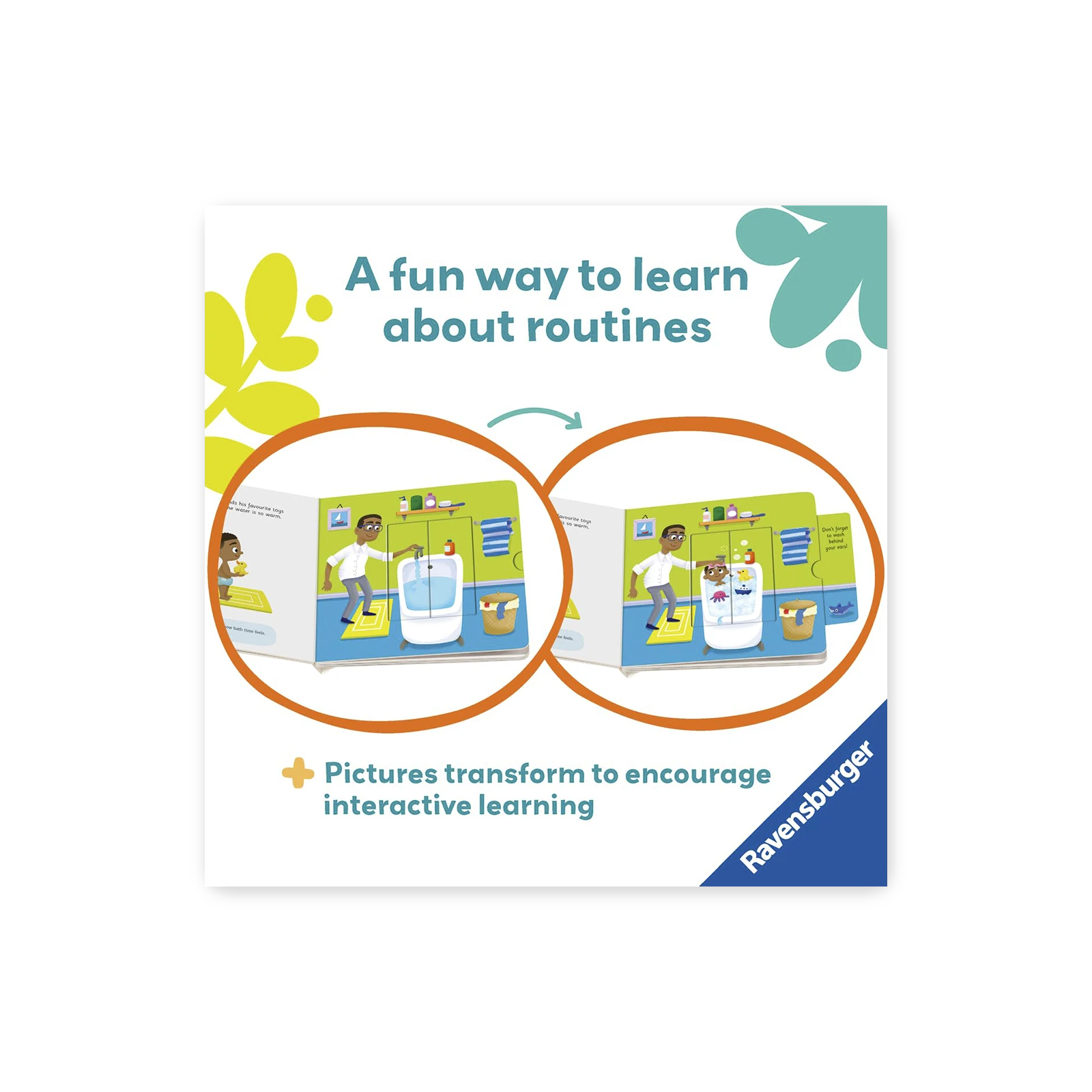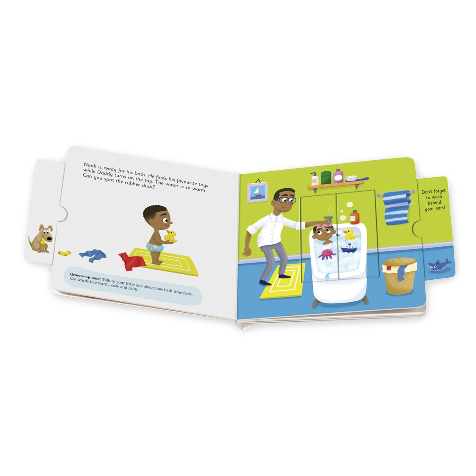 Rozwój emocjonalny i poznawczy: Książeczka pomaga maluchowi zrozumieć codzienne rytuały, co wpływa na poczucie bezpieczeństwa i stabilności.