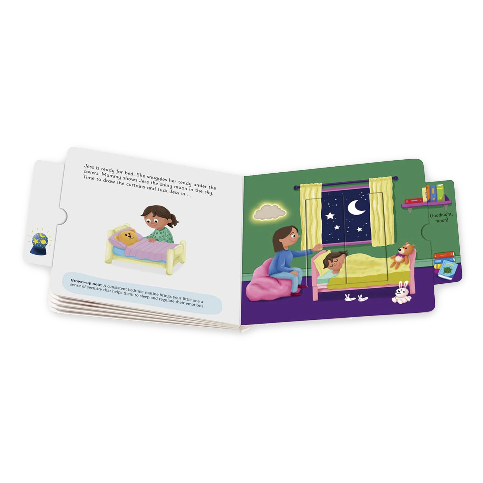 „Me and My Day: Bedtime” to interaktywna książeczka z serii Play+ od Ravensburger, stworzona z myślą o dzieciach od 18. miesiąca życia. Na 12 stronach maluchy poznają wieczorne rytuały – od mycia zębów, przez czytanie bajki, aż po zasypianie. Każda strona zawiera przesuwane elementy, które angażują dziecko w zabawę i wspierają rozwój motoryki małej.