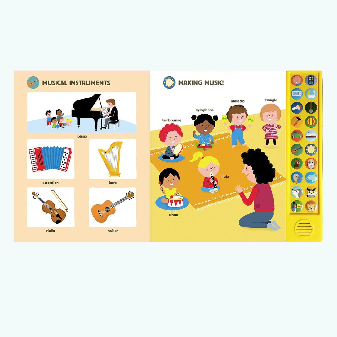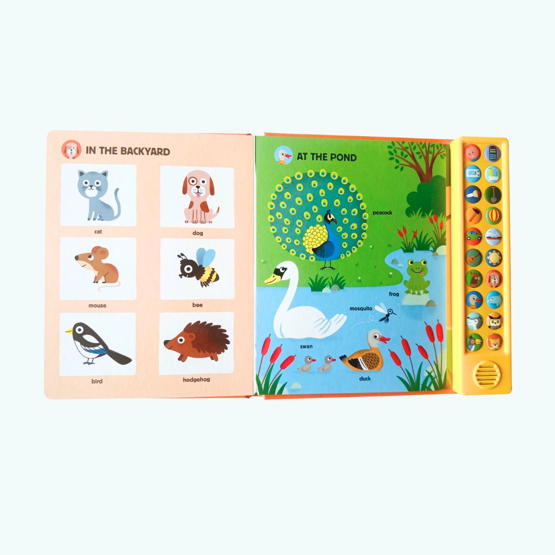 W “My Big Book of Sounds”, dzieci odkrywają różnorodne dźwięki z codziennego życia, natury i świata zwierząt. Każda strona książki zawiera łatwe do aktywowania przyciski, które odtwarzają określone dźwięki, od śpiewu ptaków, przez hałasy pojazdów, aż po dźwięki instrumentów muzycznych.