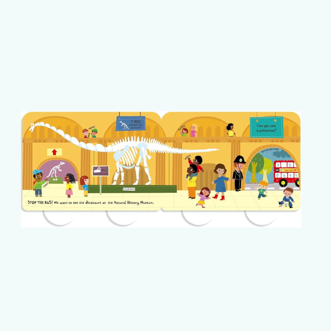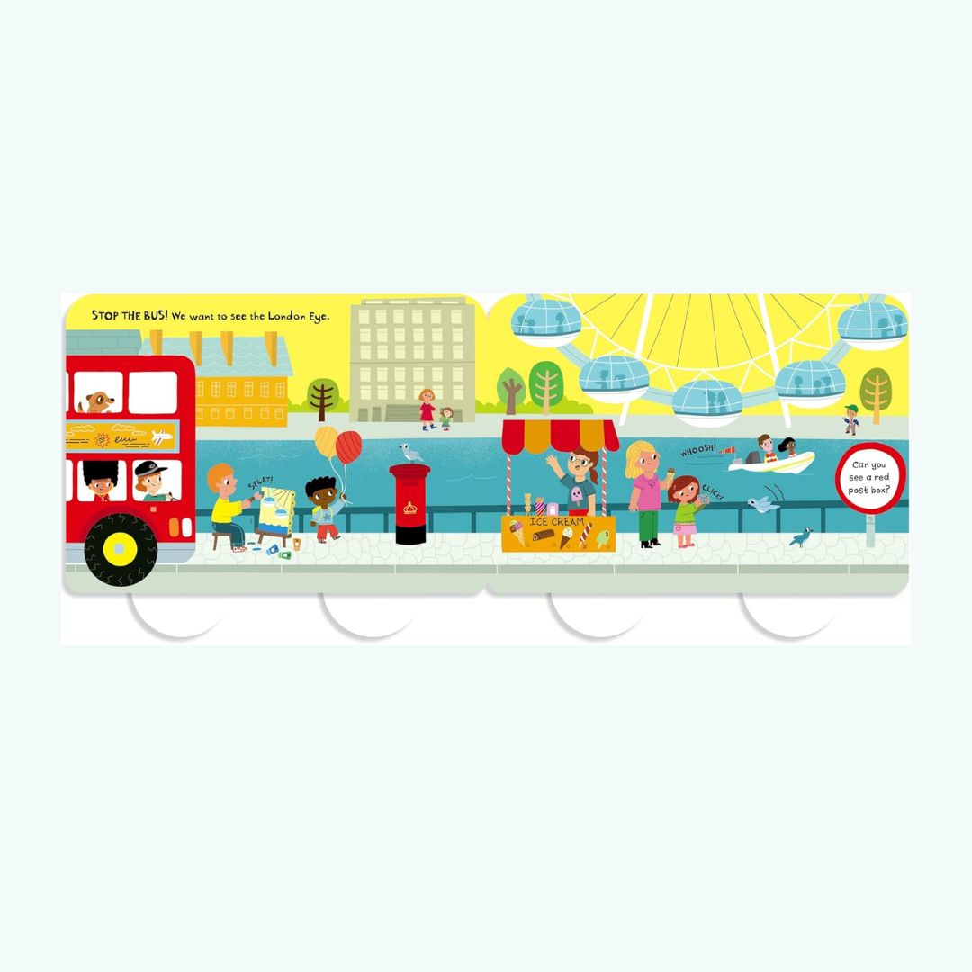 Książka ma kształt londyńskiego czerwonego autobusu, a jej ruchome koła sprawiają, że dzieci mogą nie tylko ją czytać, ale również popychać po podłodze, jak prawdziwy pojazd.