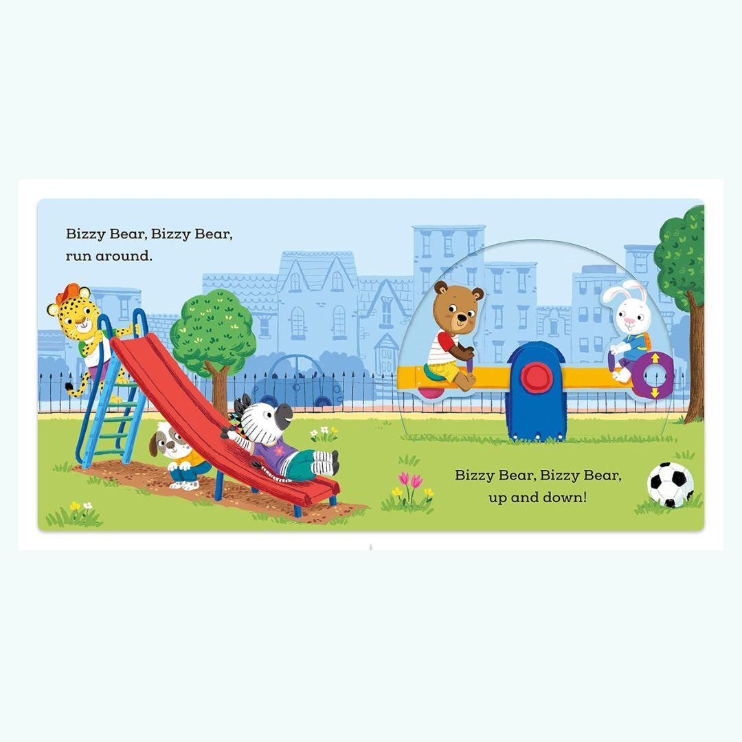 Czas na zabawę w parku razem z ukochanym misiem Bizzy Bearem! W książce Bizzy Bear: Playtime Park maluchy towarzyszą bohaterowi podczas pełnego radości dnia na świeżym powietrzu. Razem ze swoimi przyjaciółmi Bizzy huśta się, bawi w piaskownicy, zjeżdża ze zjeżdżalni i wspina się po drabinkach.