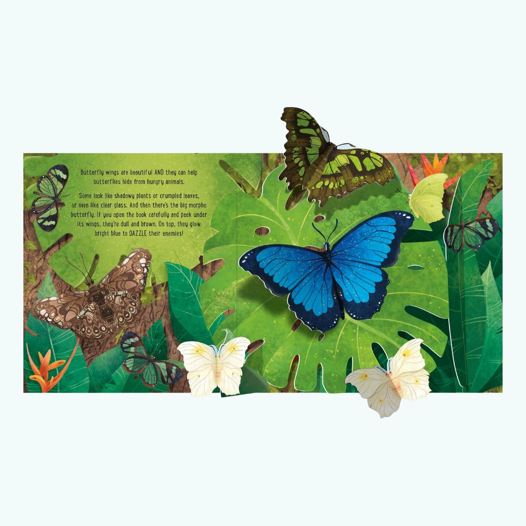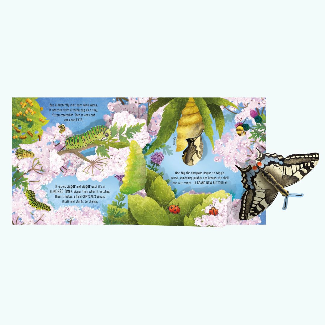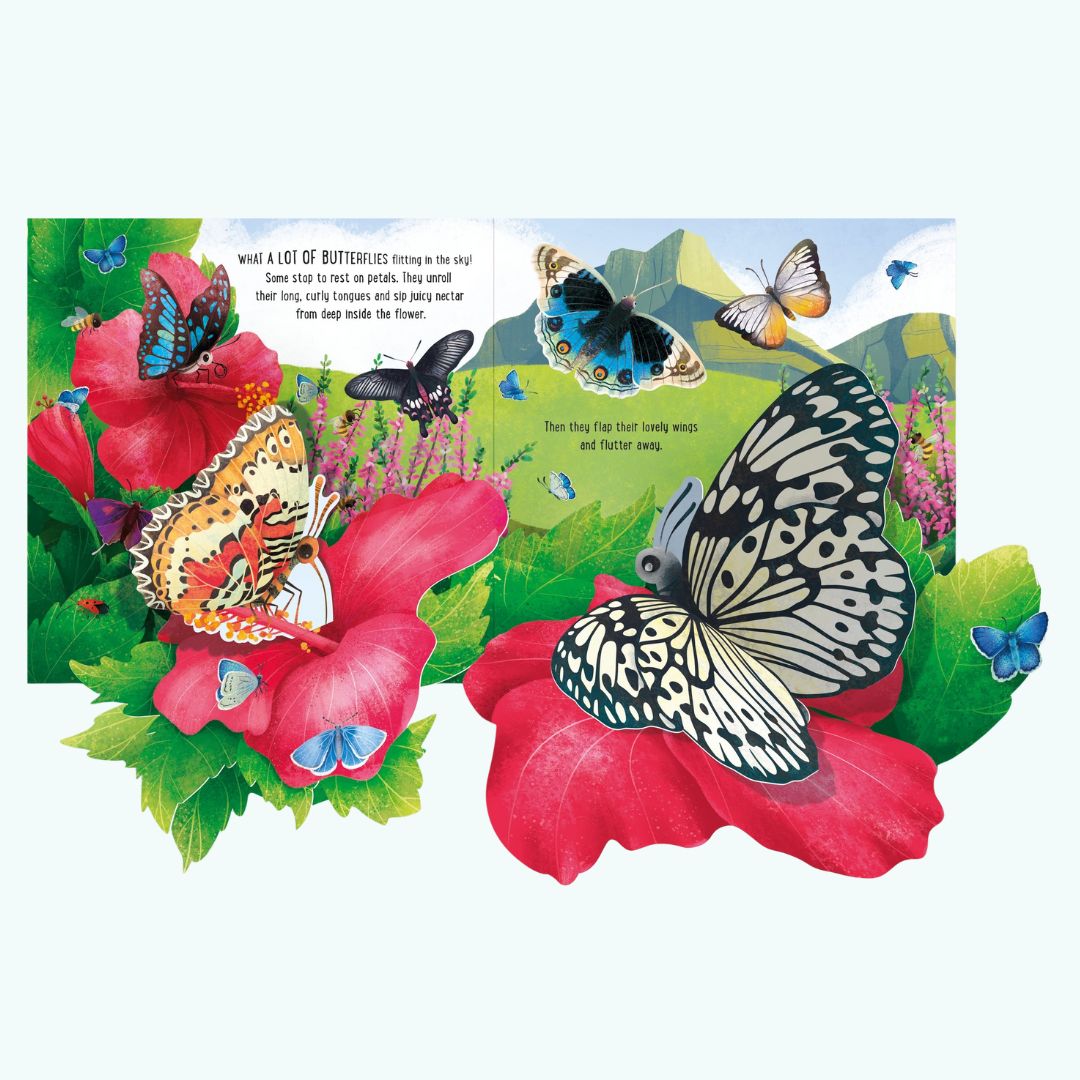 Pop-Up Butterflies to zachwycająca książka interaktywna wydawnictwa Usborne, która w spektakularny sposób przybliża dzieciomświat motyli. Dzięki starannie zaprojektowanym elementom pop-up każda rozkładówka dosłownie ożywa, zamieniając czytanie w wyjątkowe doświadczenie wizualne.