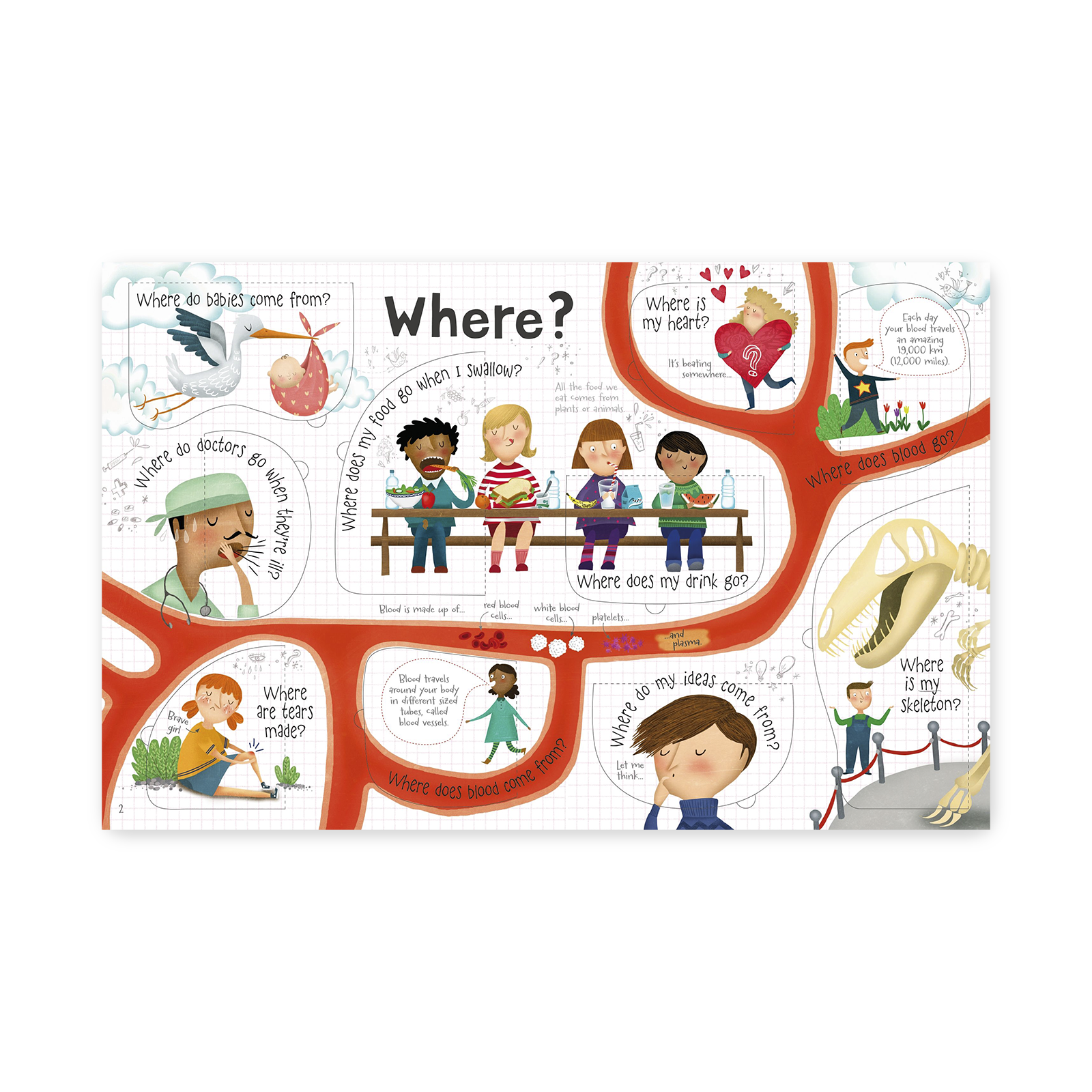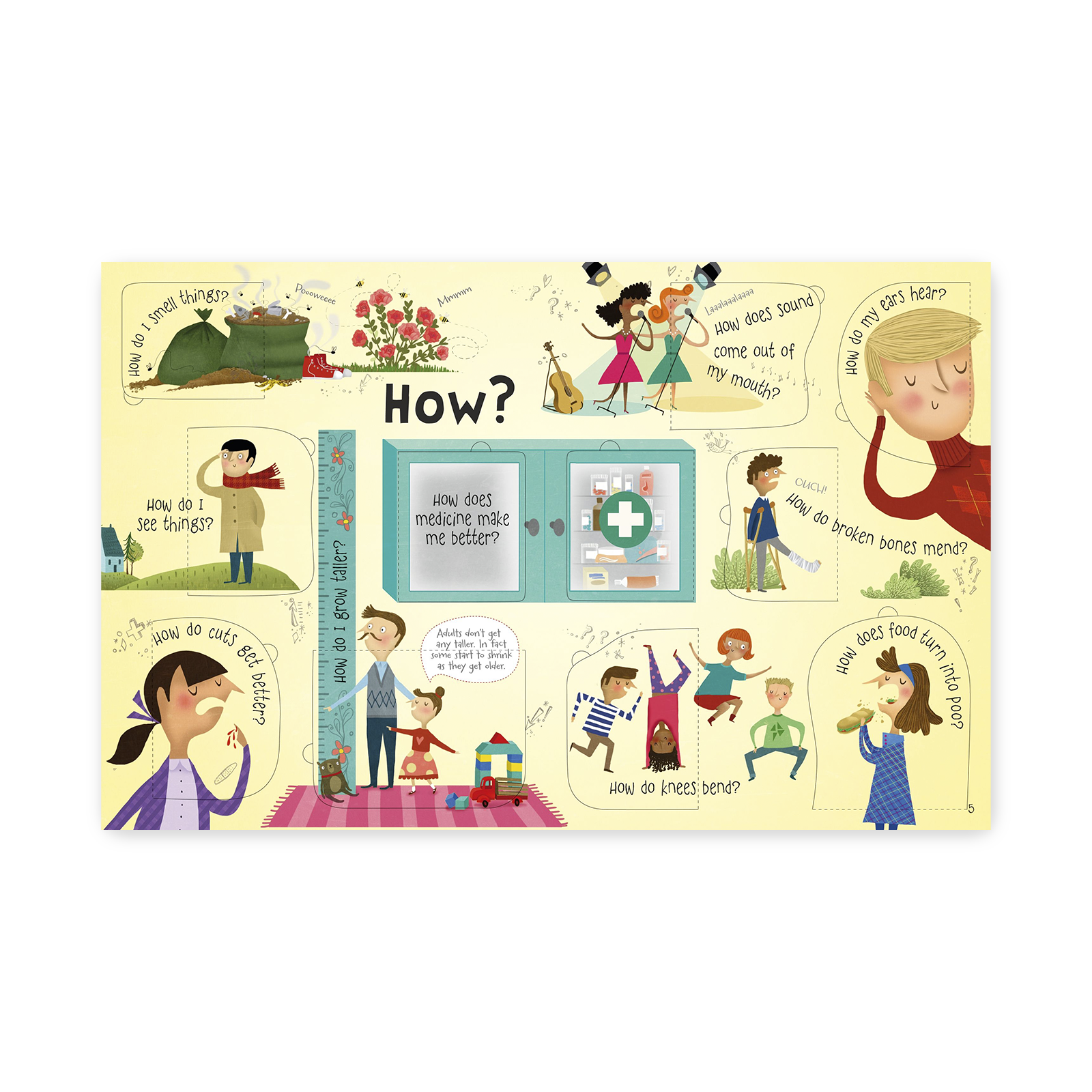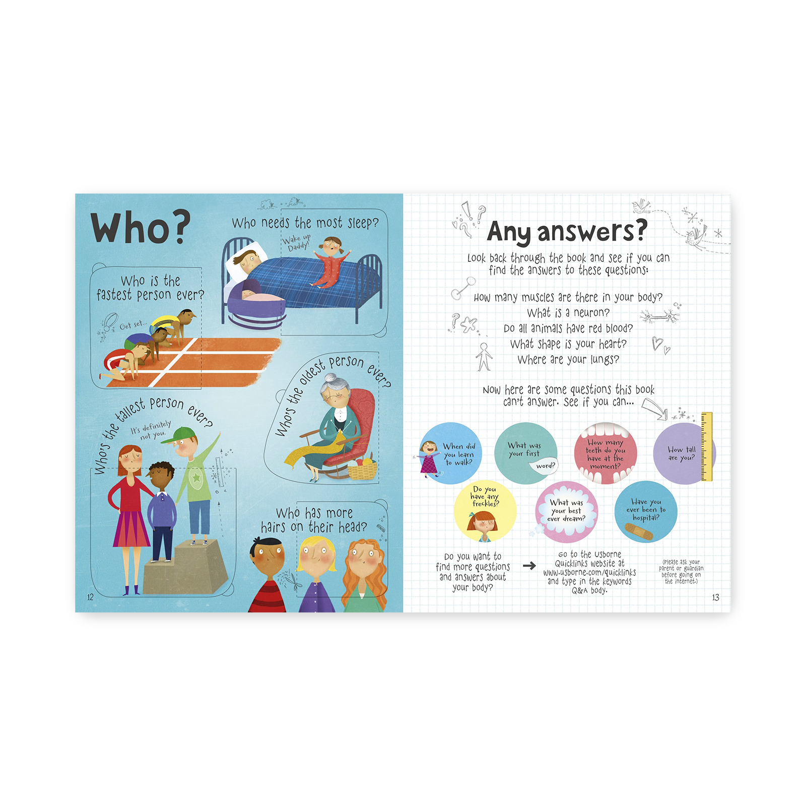 Q&A about your Body to książka z otwieranymi okienkami, która w przystępny sposób odpowiada na wiele intrygujących pytań dotyczących ludzkiego ciała: