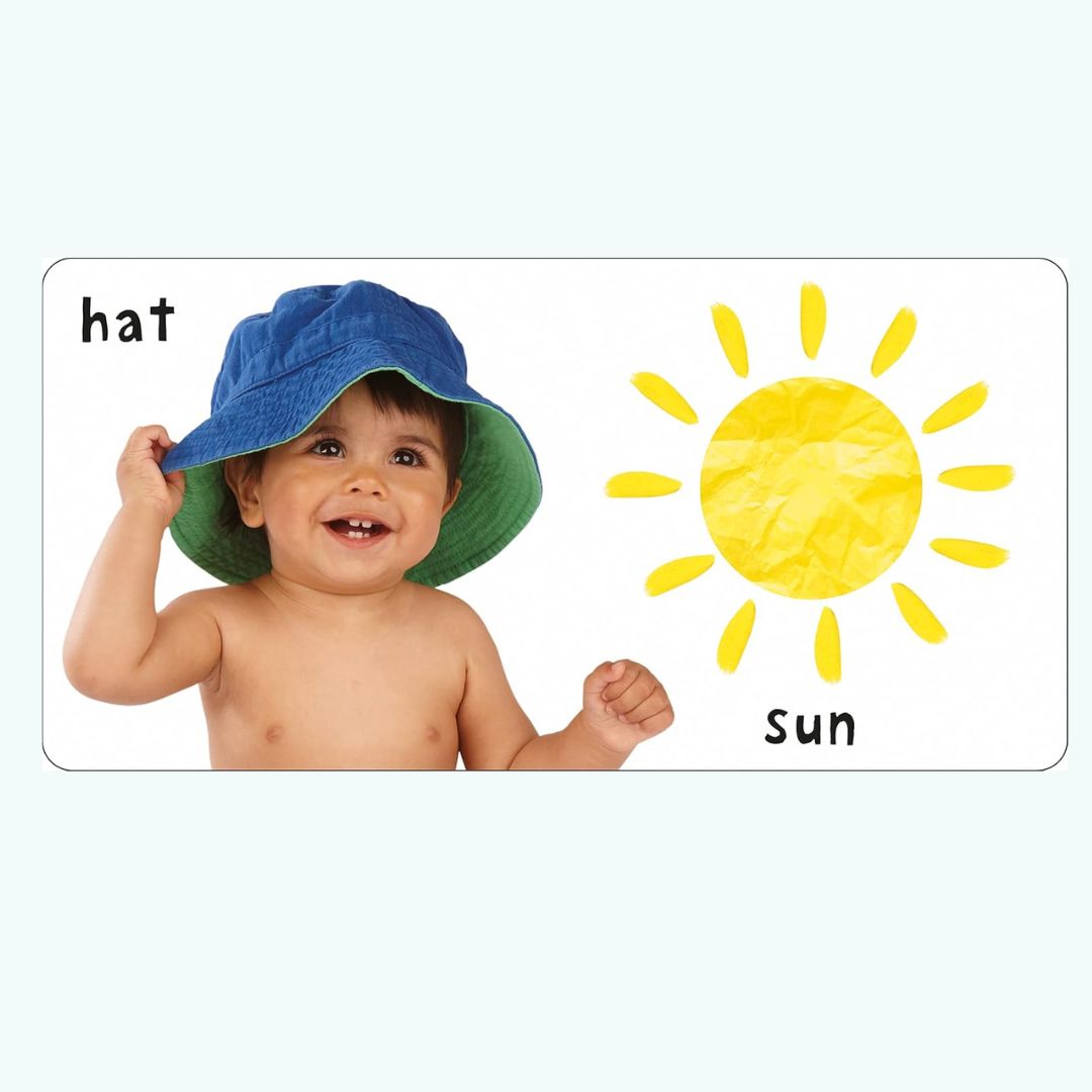 See, Touch, Feel: Words to kolorowa książeczka sensoryczna, która w przyjazny i interaktywny sposób wprowadza maluchy w świat pierwszych słów.