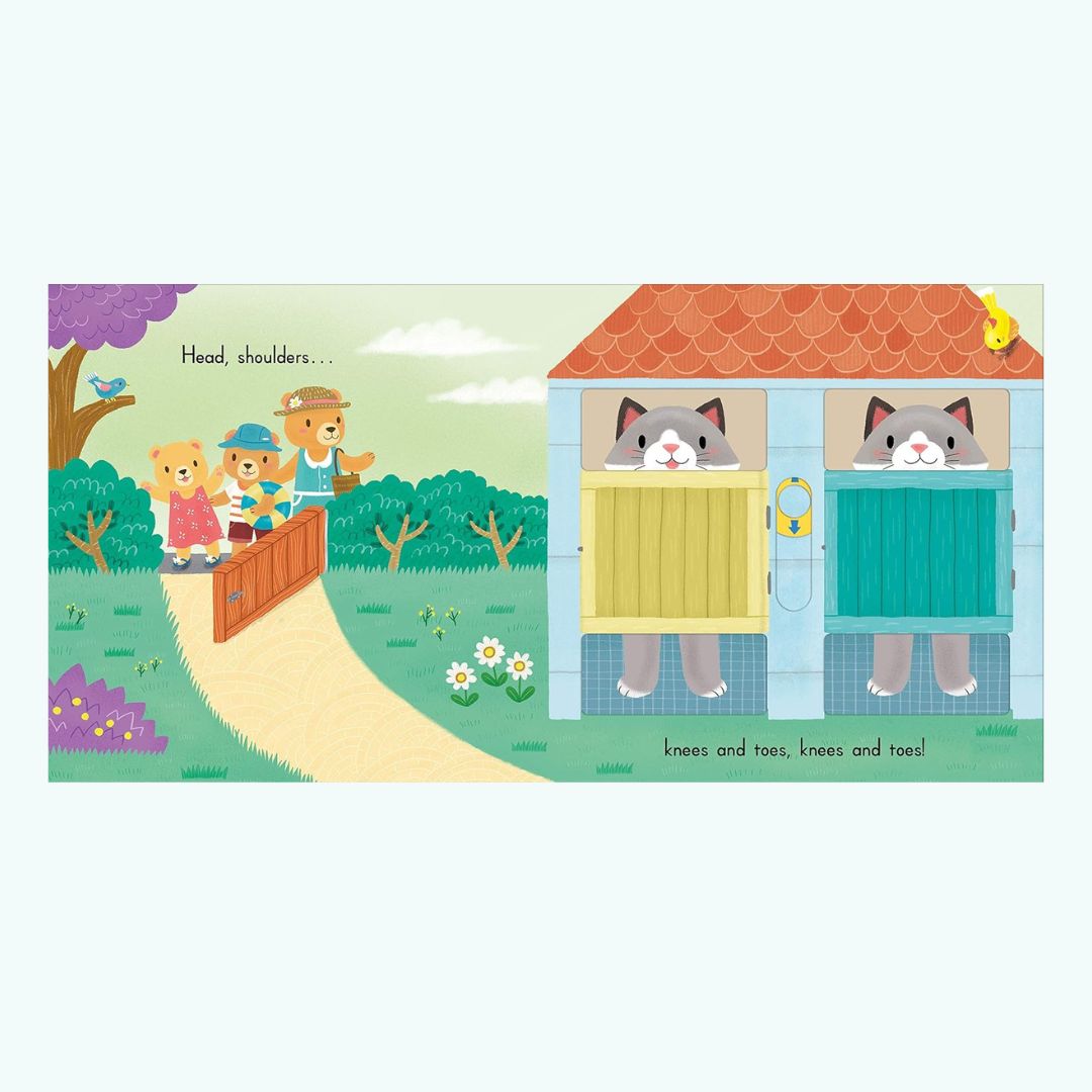 Sing Along With Me! Head, Shoulders, Knees and Toes to radosna, interaktywna książeczka dla najmłodszych, oparta na popularnej piosence dla dzieci.