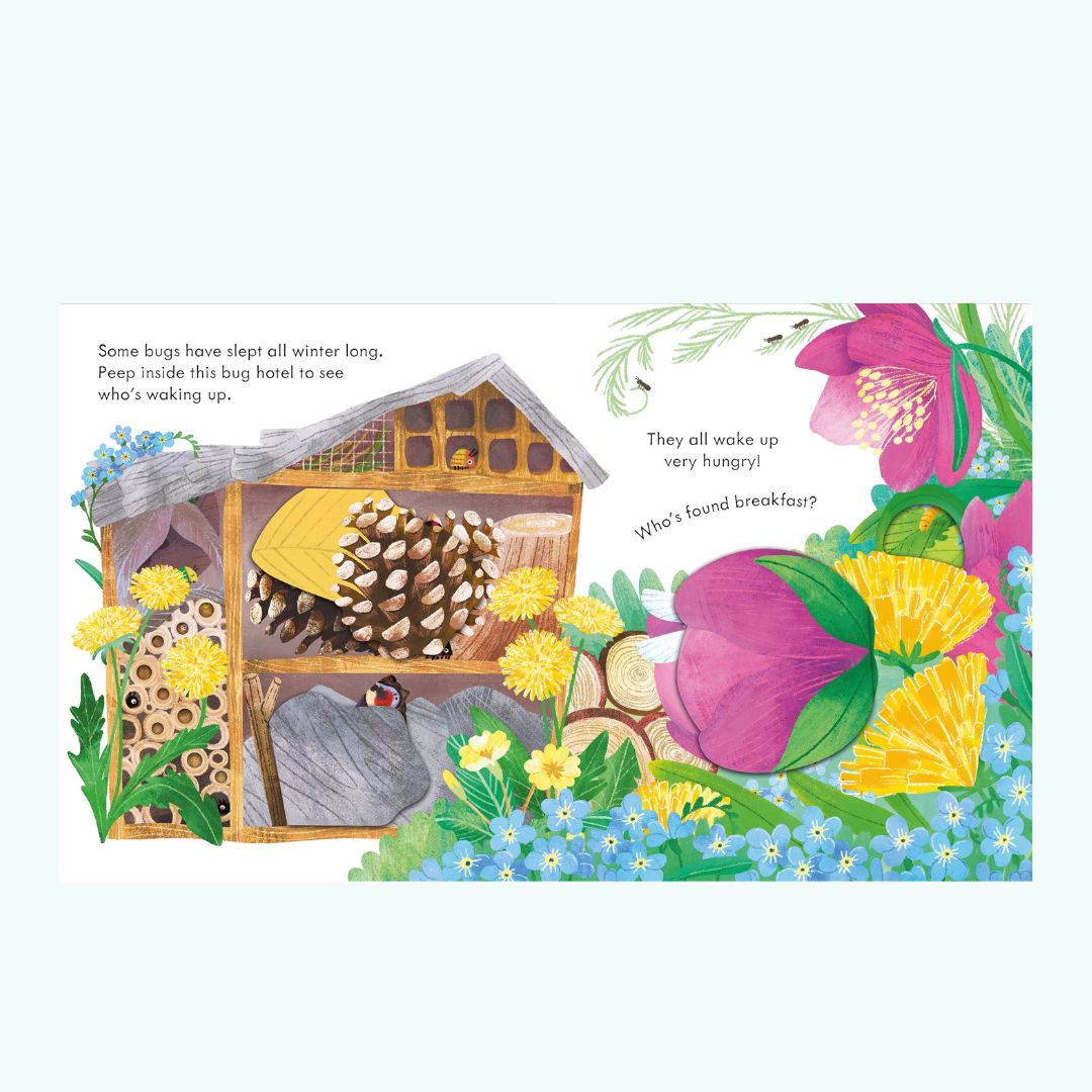 Interaktywny format, proste zdania i bogate słownictwo sprawiają, że książka „Peep Inside Springtime” jest świetnym wyborem dla dzieci uczących się języka angielskiego. Otwierane okienka dodatkowo angażują i sprawiają, że nauka staje się prawdziwą przyjemnością.