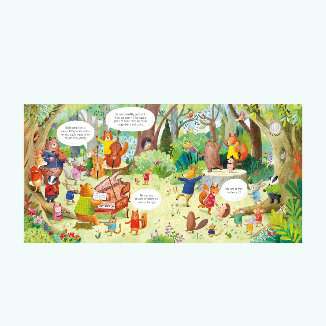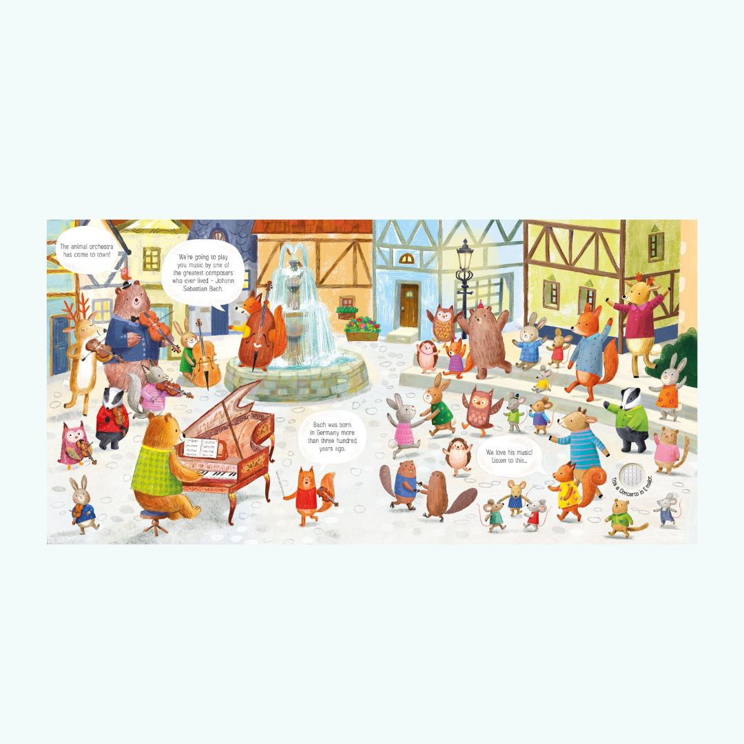Wprowadź swoje dziecko do magicznego świata muzyki klasycznej z książką „The Animal Orchestra Plays Bach” od wydawnictwa Usborne! Ta interaktywna książeczka muzyczna to doskonały sposób, aby zaznajomić najmłodszych z dźwiękami Bacha i instrumentami orkiestry.