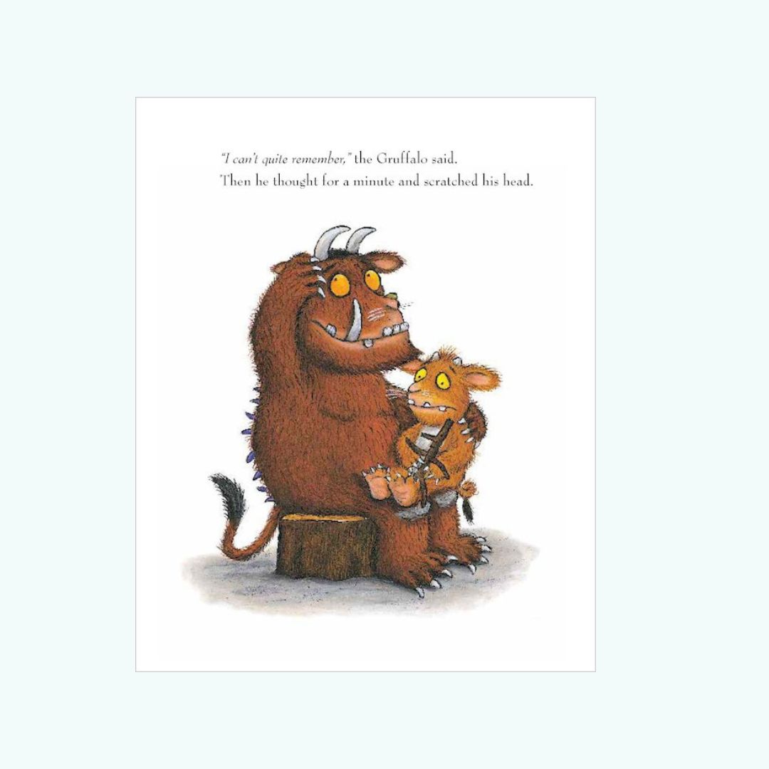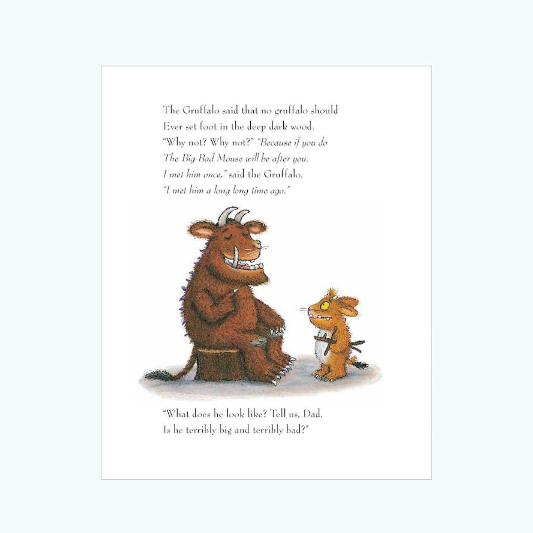 “The Gruffalo’s Child” to bestsellerowa kontynuacja popularnej książki “The Gruffalo”, stworzonej przez autorkę Julię Donaldson i ilustrowanej przez Axela Schefflera. Ta pięknie wydana kartonowa książka opowiada o odważnej przygodzie dziecka Gruffalo, które wbrew ostrzeżeniom ojca wyrusza do ciemnego lasu, by odnaleźć ” The Big Bad Mouse”.