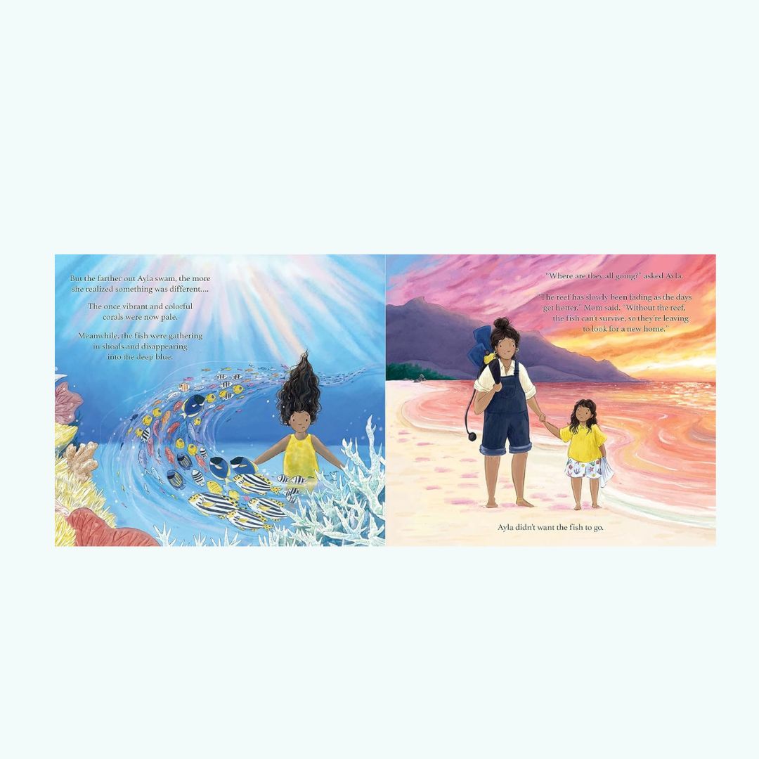 Ayla and her marine biologist mum live on a beautiful tropical island, surrounded by a coral reef. One morning, Ayla notices that many of the fish have disappeared, and the once vibrant corals have turned pale. Is it too late to save the reef?