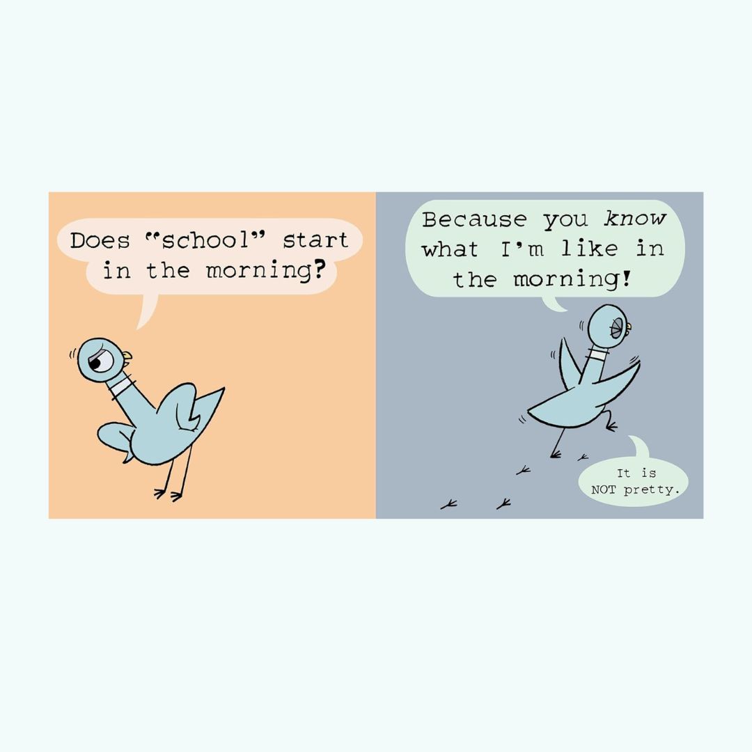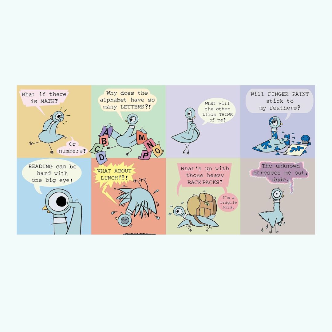 The pigeon has to go to school to pełna humoru historia o gołębiu, który nie jest przekonany do pomysłu chodzenia do szkoły.