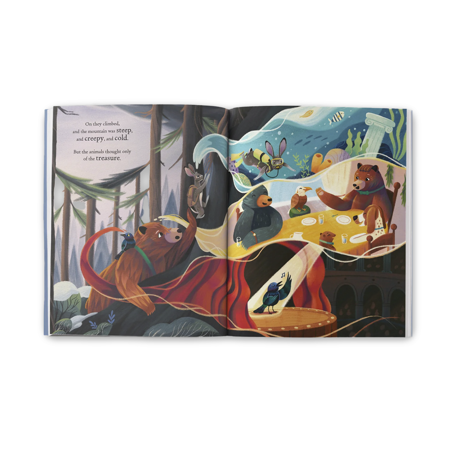 The Treasure to pięknie zilustrowana książka, która uczy, iż prawdziwe skarby to nie złoto czy kamienie szlachetne, ale przyjaźń i miłość. To wyjątkowa książka, która poruszy serca dzieci i dorosłych, przypominając, że największe skarby znajdują się nie w skrzyniach, lecz w nas samych i w ludziach, których spotykamy na swojej drodze.